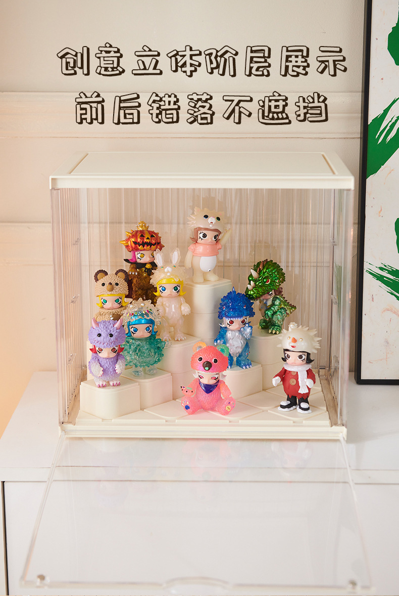 블라인드 박스 보관 디스플레이 스탠드는 방진 투명 자기 흡입 피규어 디스플레이 박스 버블 마트 블라인드 박스 보관 상자와 함께 쌓을 수 있습니다.