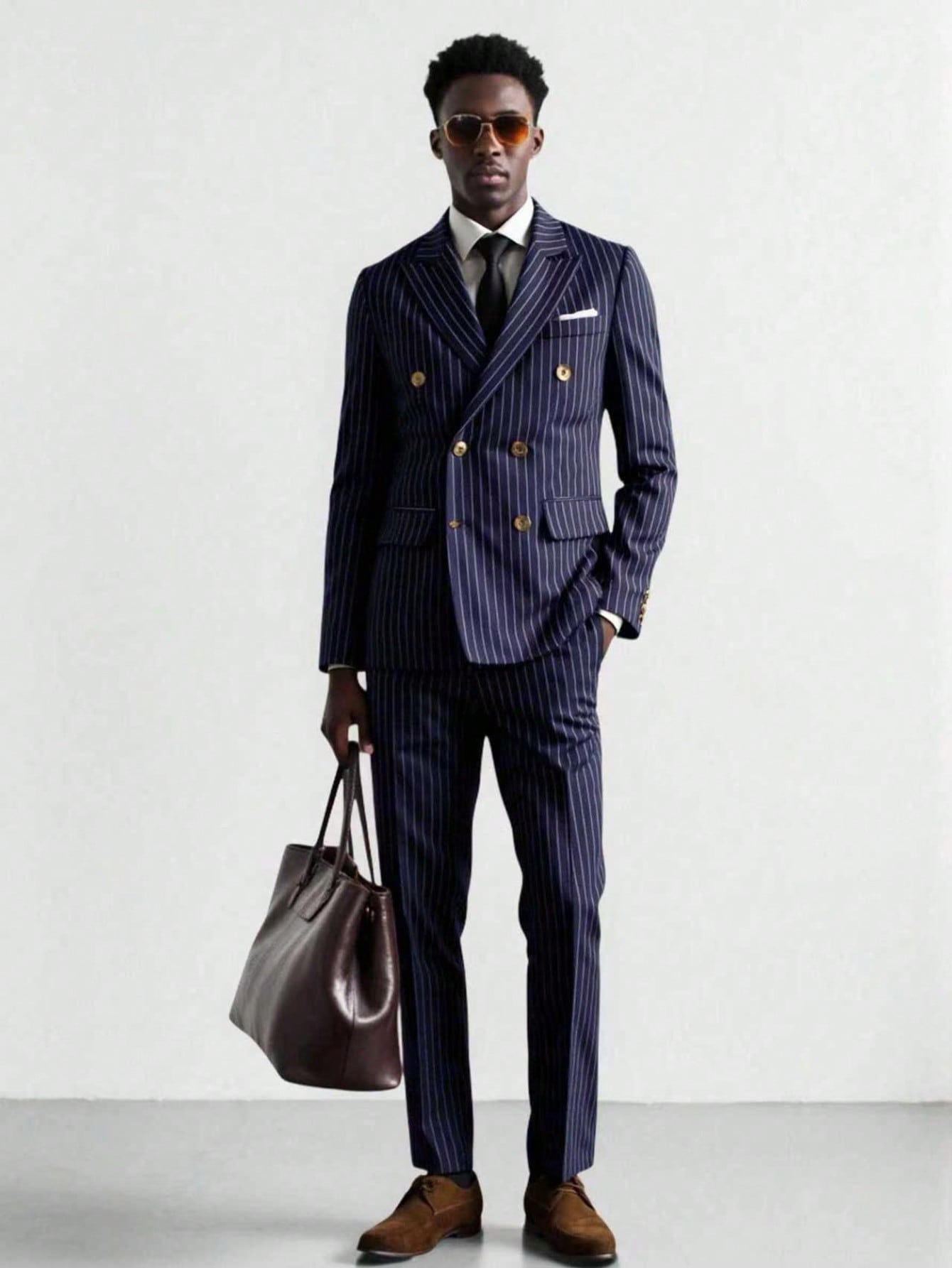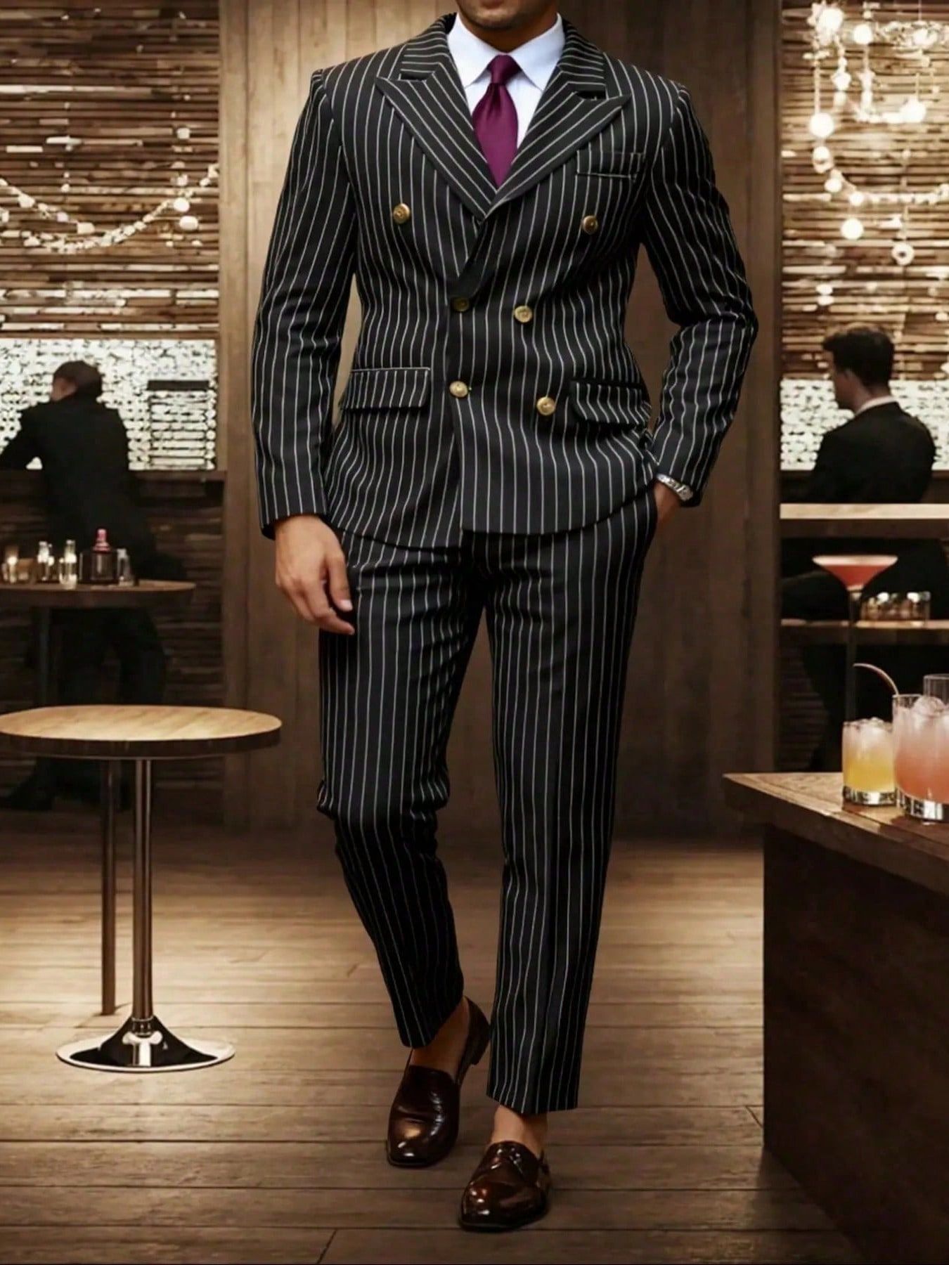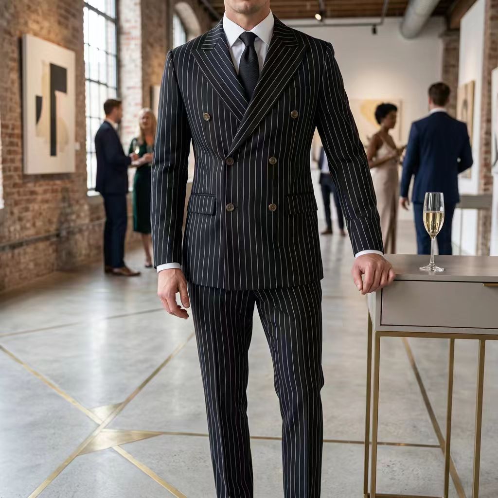2026 해외 유럽 및 미국 남성복 정장 세트 남성 스트라이프 정장 바지 비즈니스 만찬 웨딩 241014