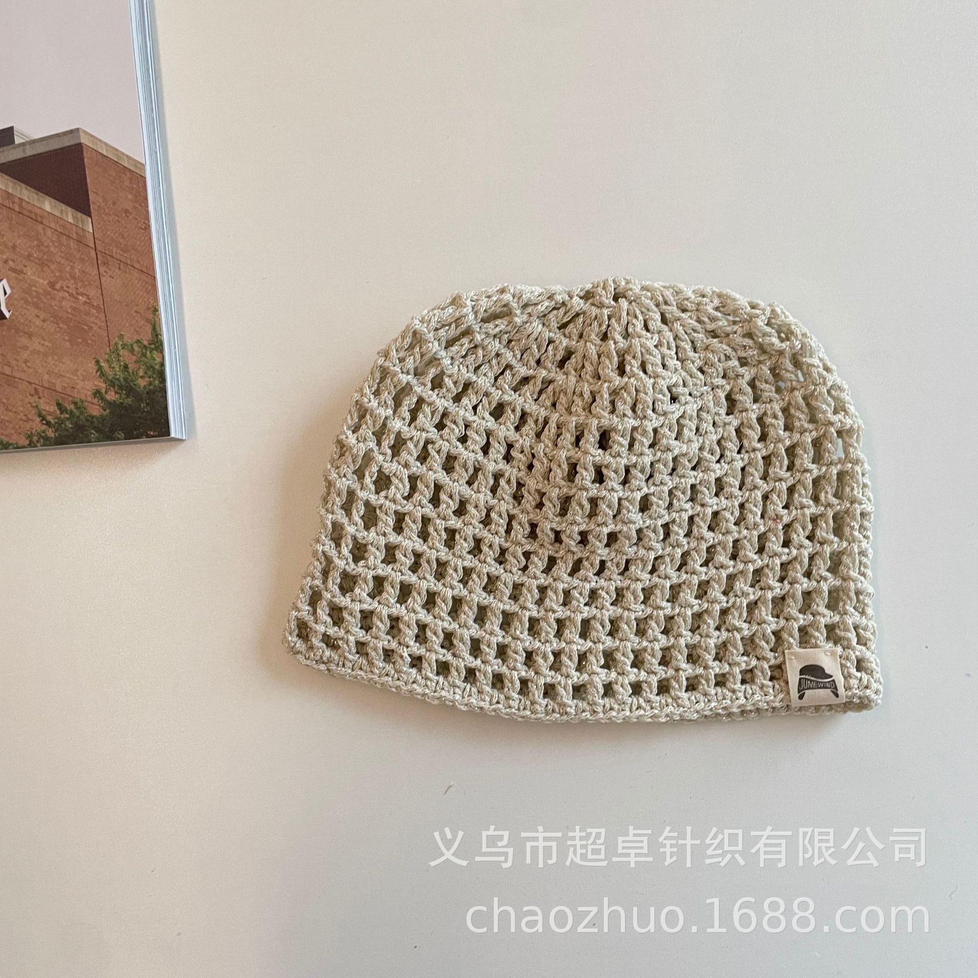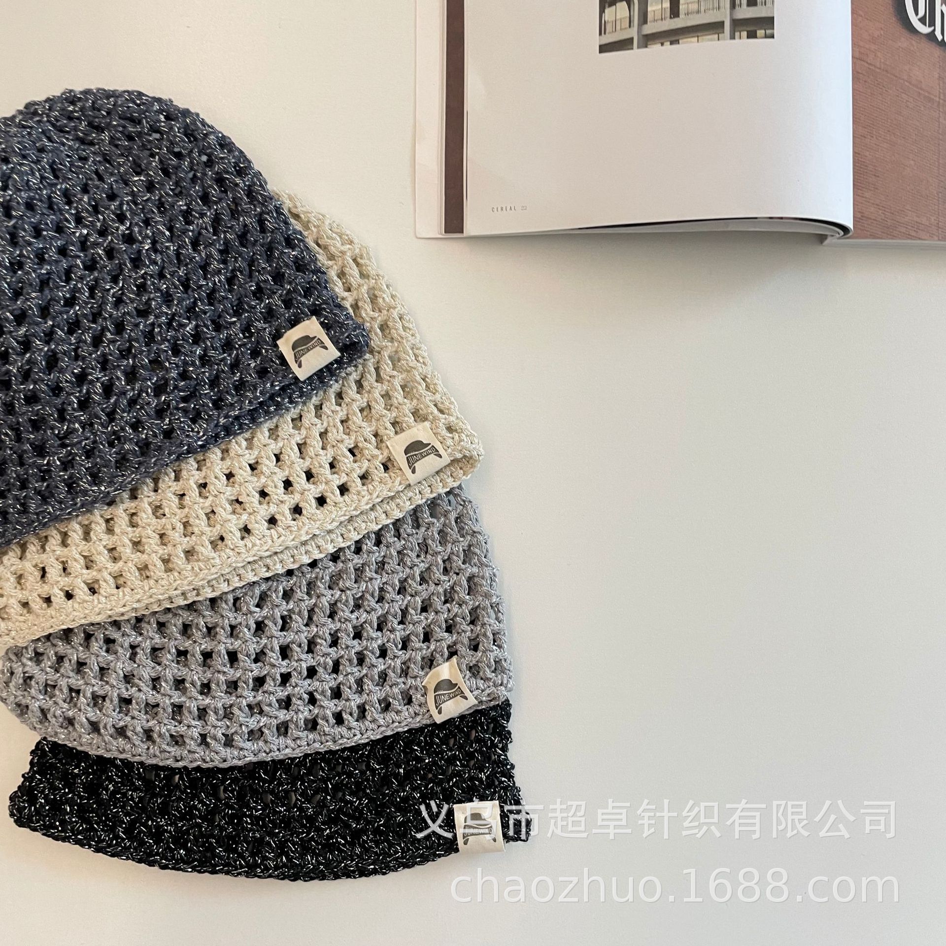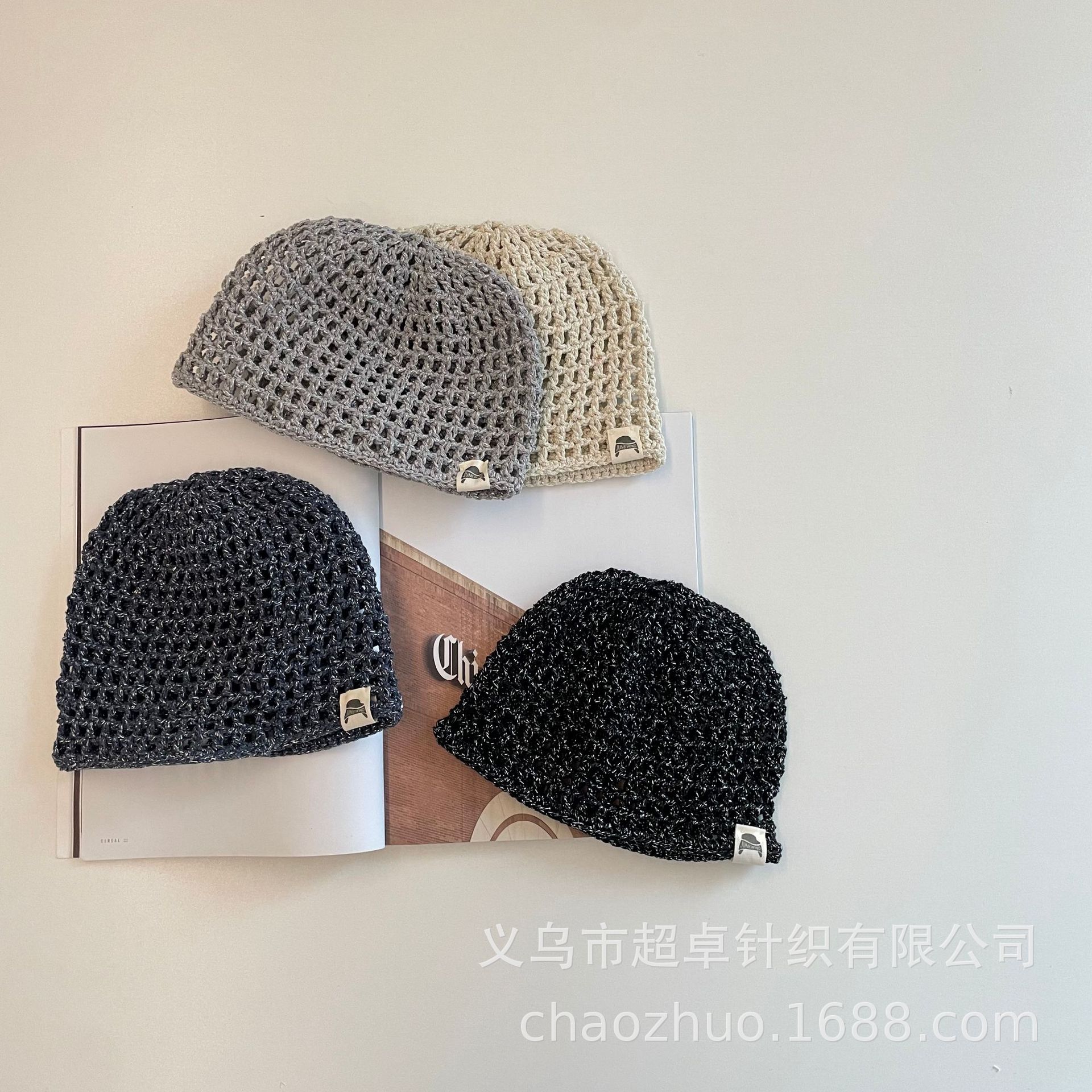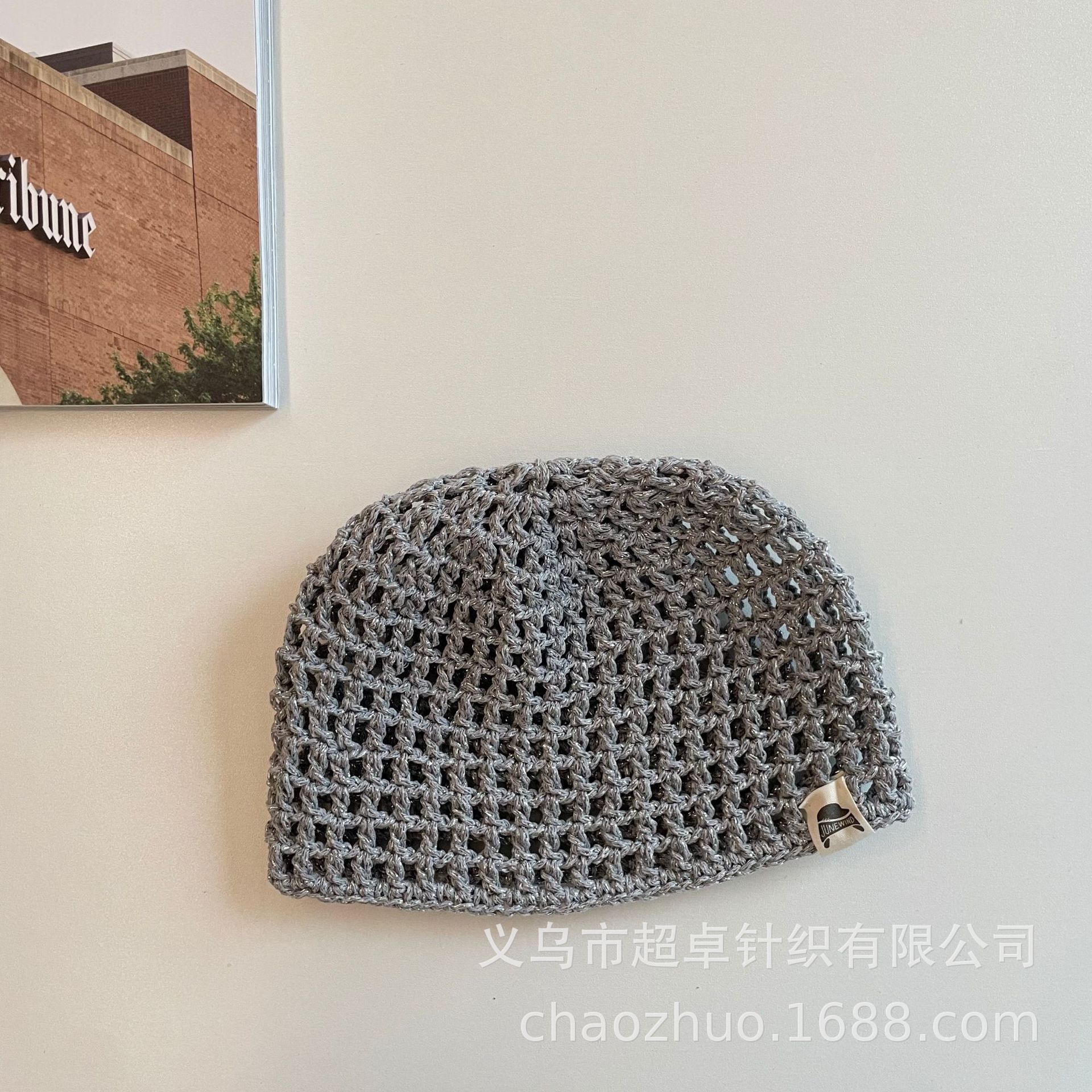 패셔너블한 분위기의 틈새 니트 작은 라벨 구멍 멜론 껍질 모자 어린이 실버 실 수제 모자스토어 가기