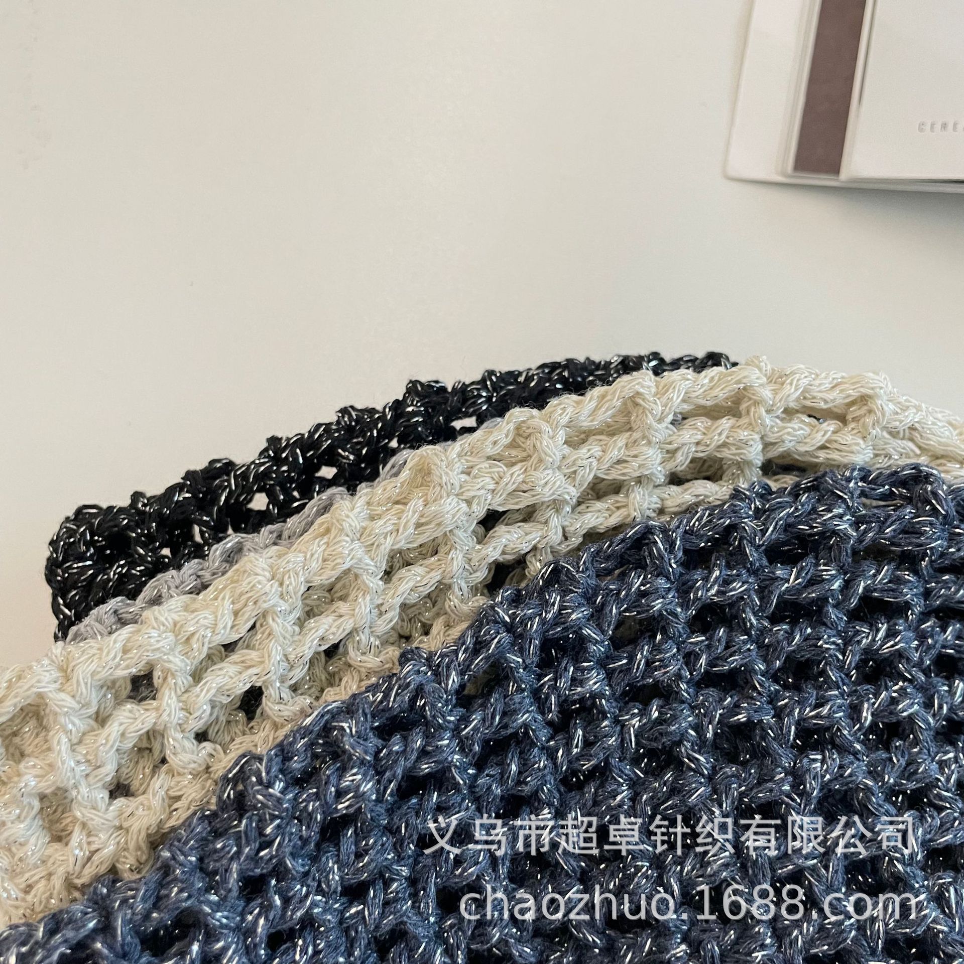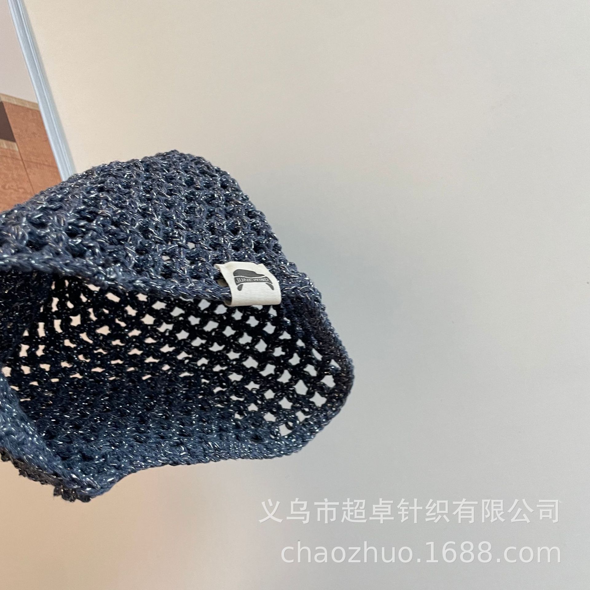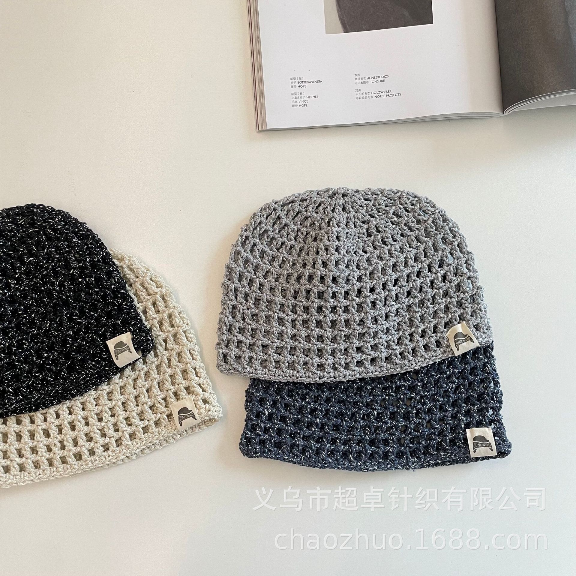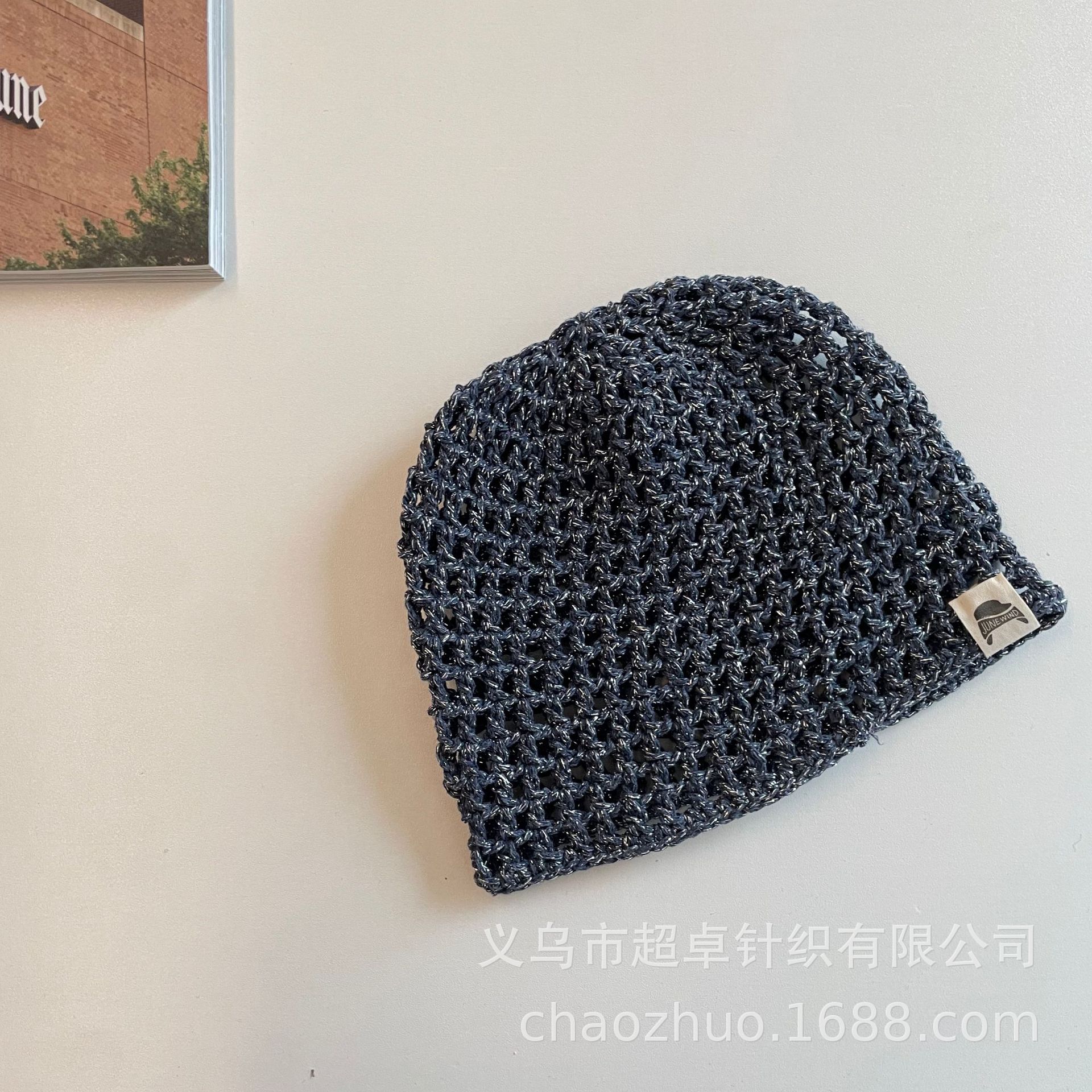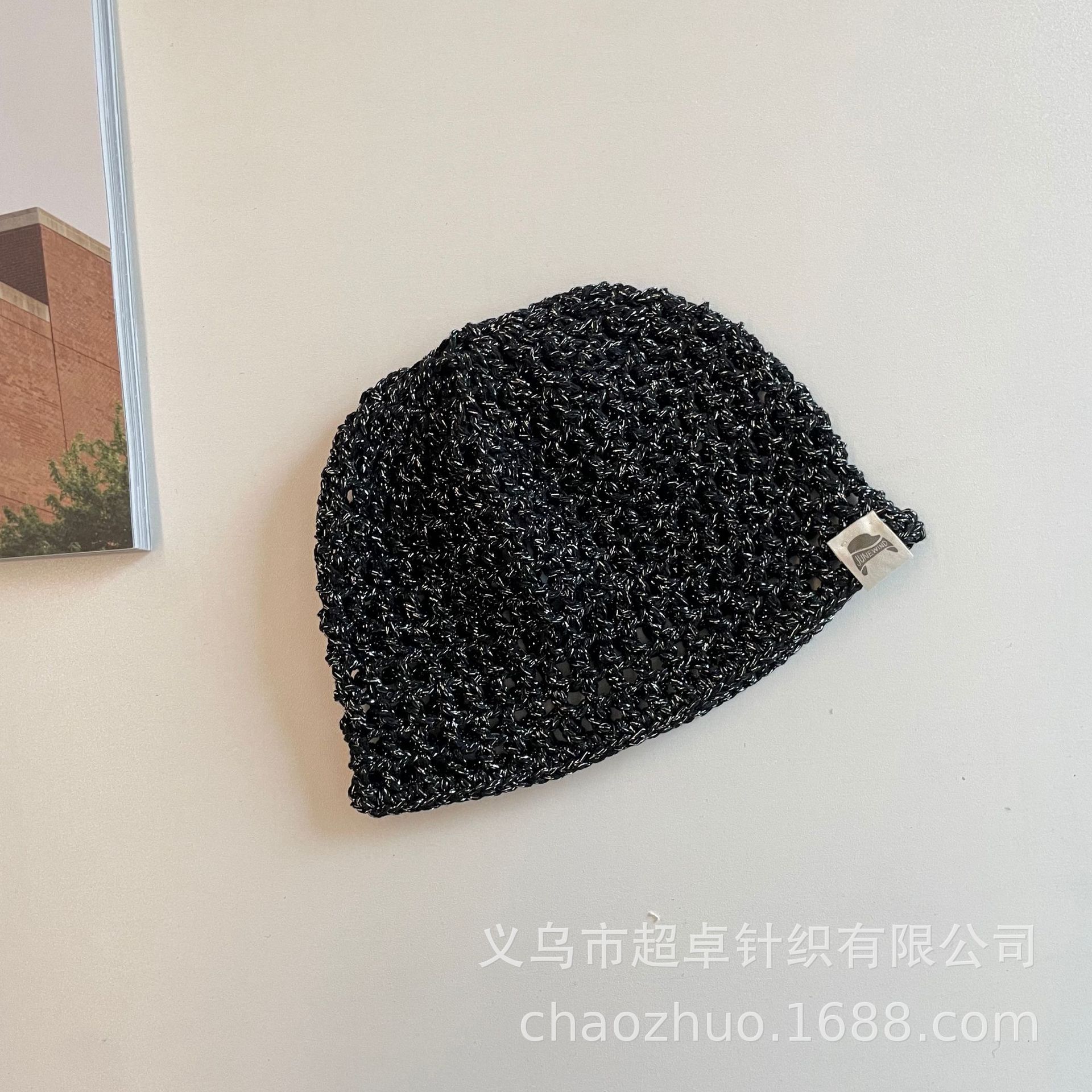 패셔너블한 분위기의 틈새 니트 작은 라벨 구멍 멜론 껍질 모자 어린이 실버 실 수제 모자스토어 가기