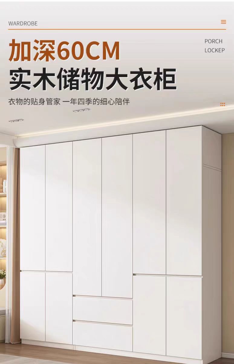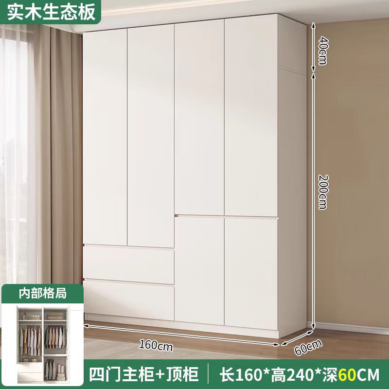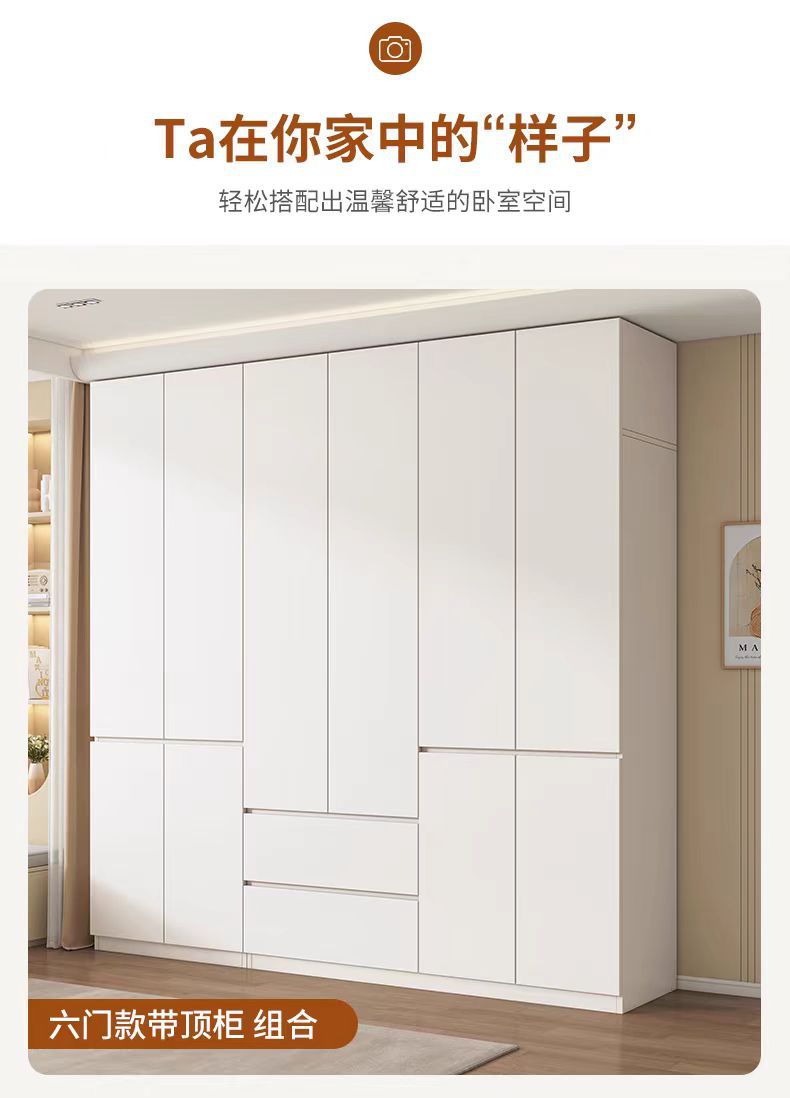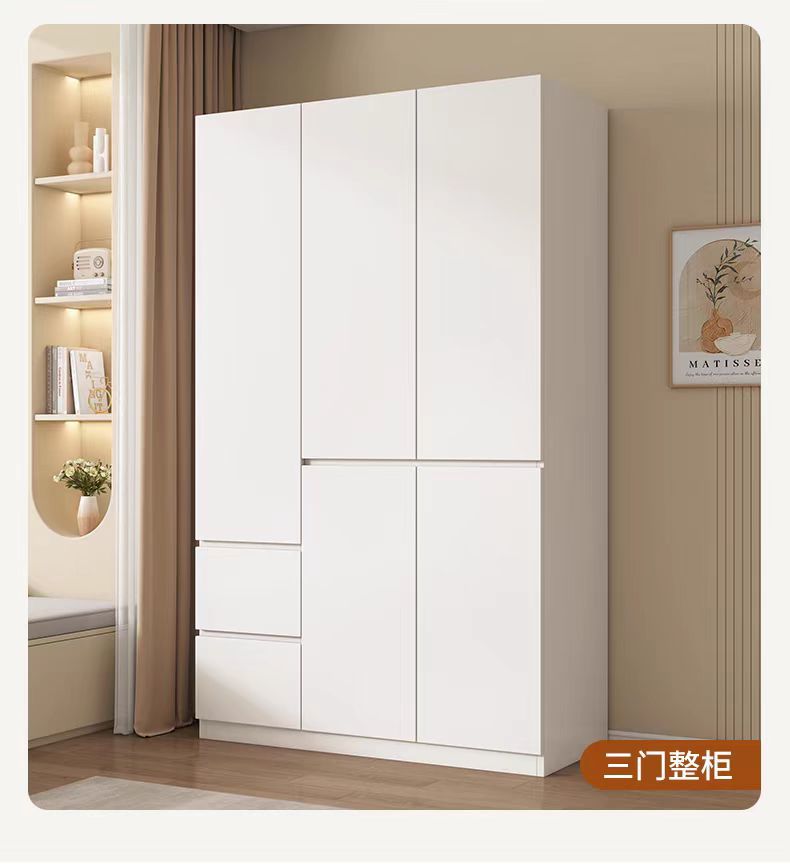 화이트 원목 옷장 가정용 침실용 원도어 대용량 옷장 손잡이 없는 다기능 대형 옷장