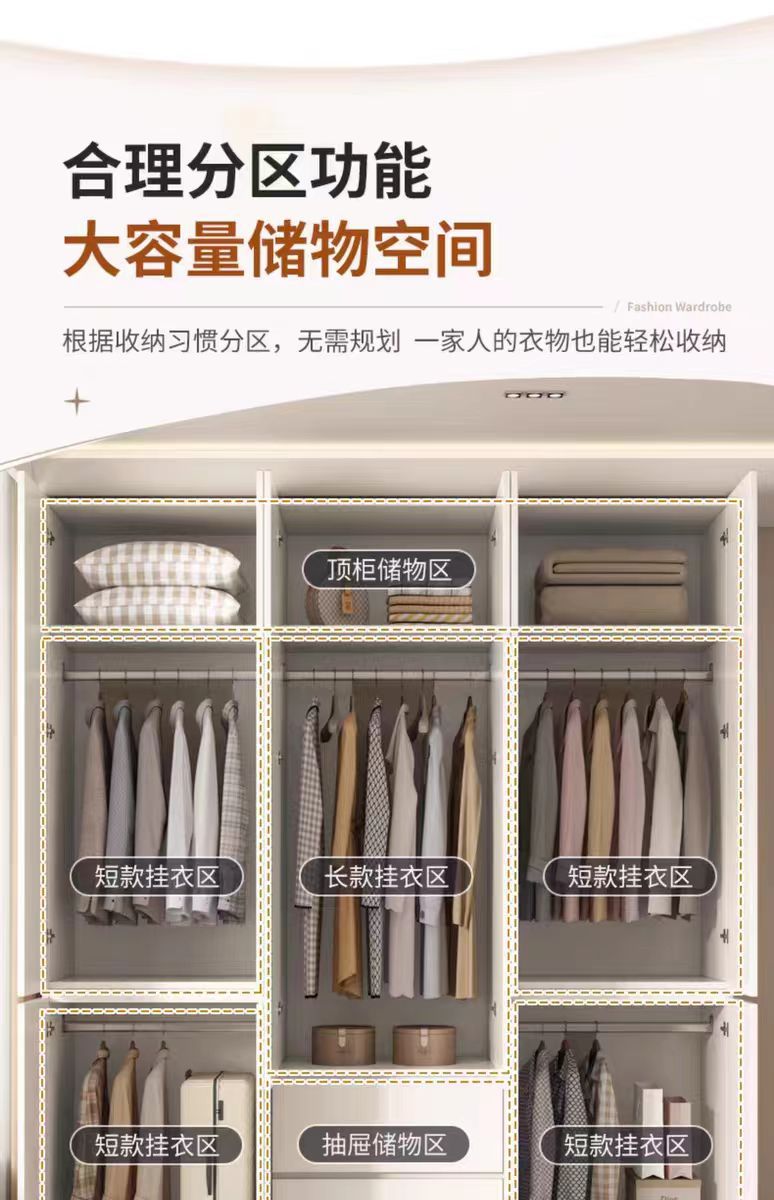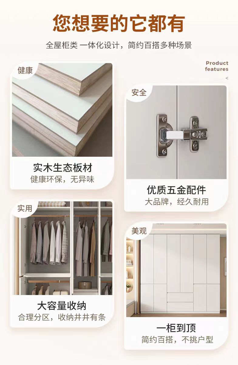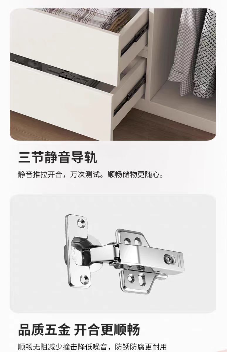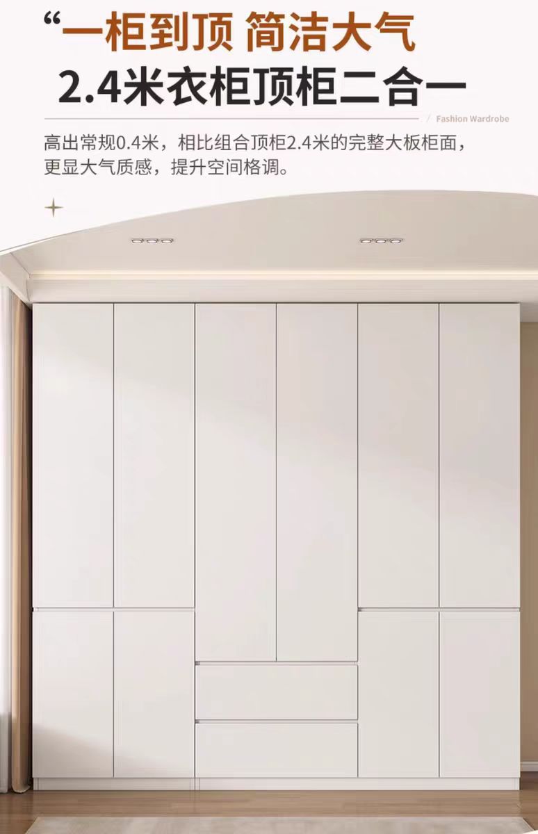 화이트 원목 옷장 가정용 침실용 원도어 대용량 옷장 손잡이 없는 다기능 대형 옷장