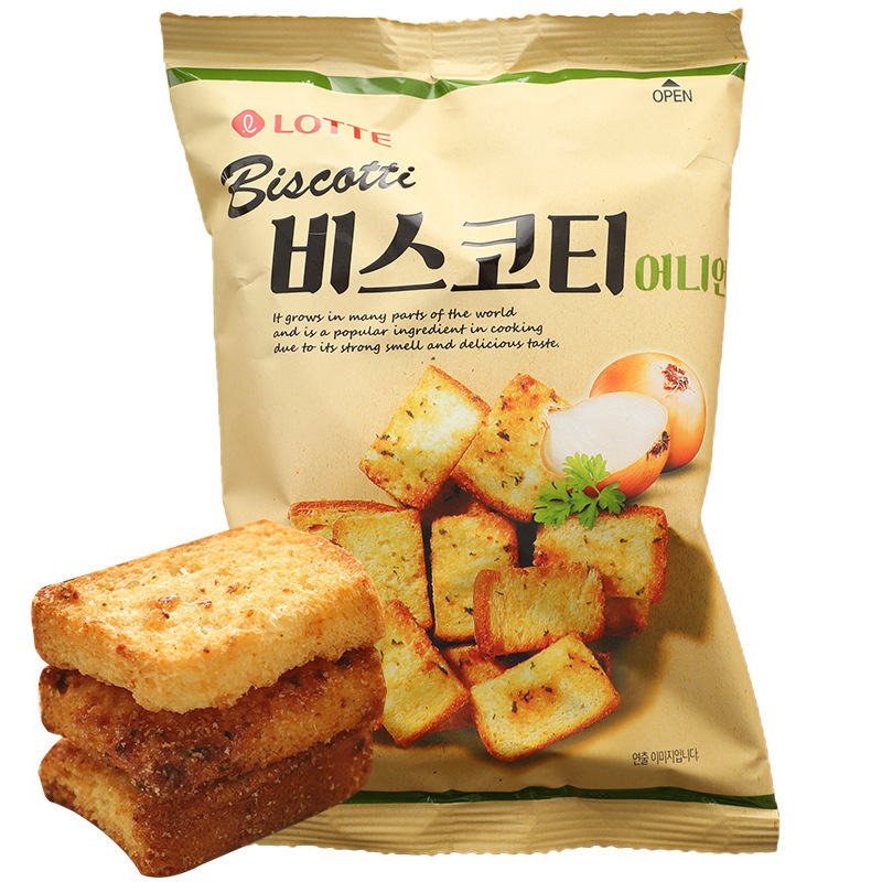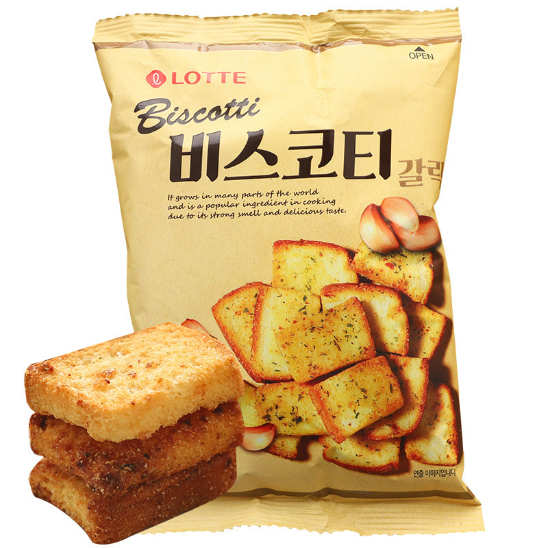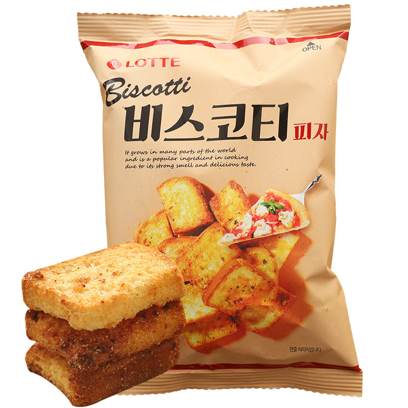 한국수입 롯데롯데 마늘피자맛 구운빵 바삭바삭 양파빵 스낵 70g