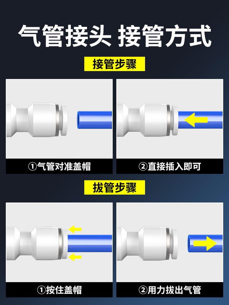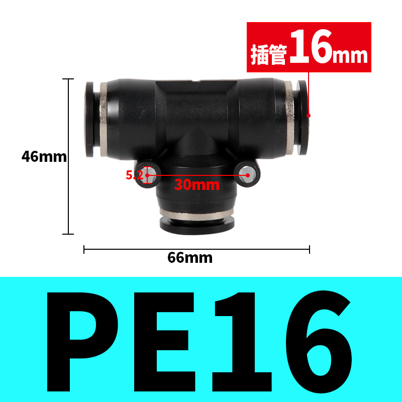 Baihui 공압 기관 퀵 커넥터 3플러그 포크 동일 직경 티 커넥터 PE4/6/8/10/12/PY/PU/PV
