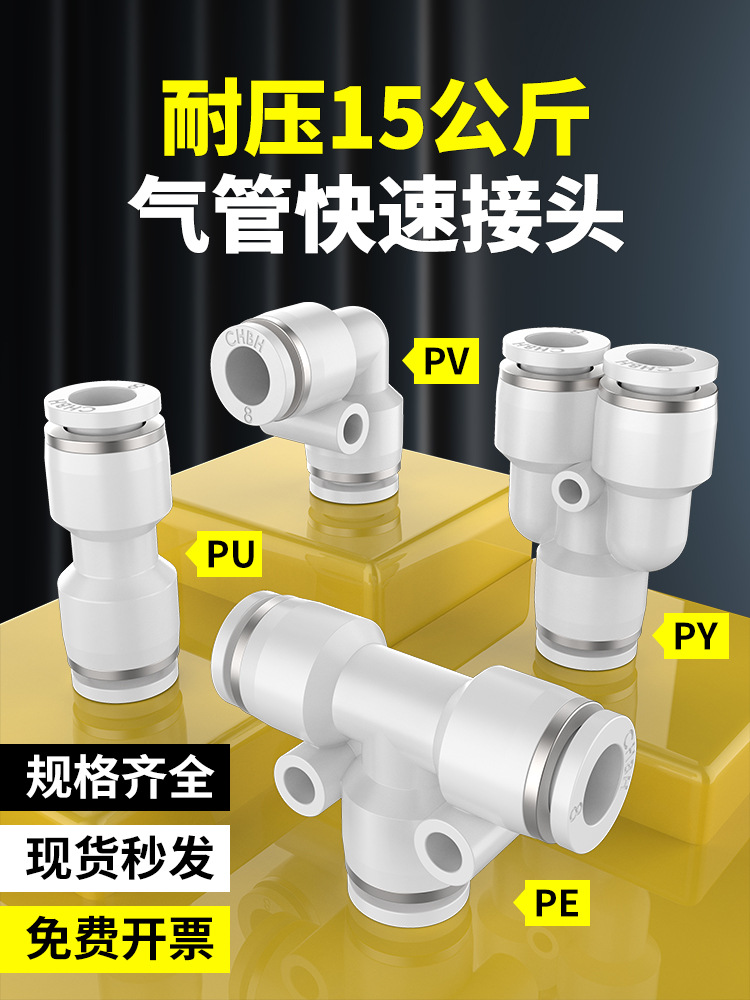 Baihui 공압 기관 퀵 커넥터 3플러그 포크 동일 직경 티 커넥터 PE4/6/8/10/12/PY/PU/PV스토어 가기