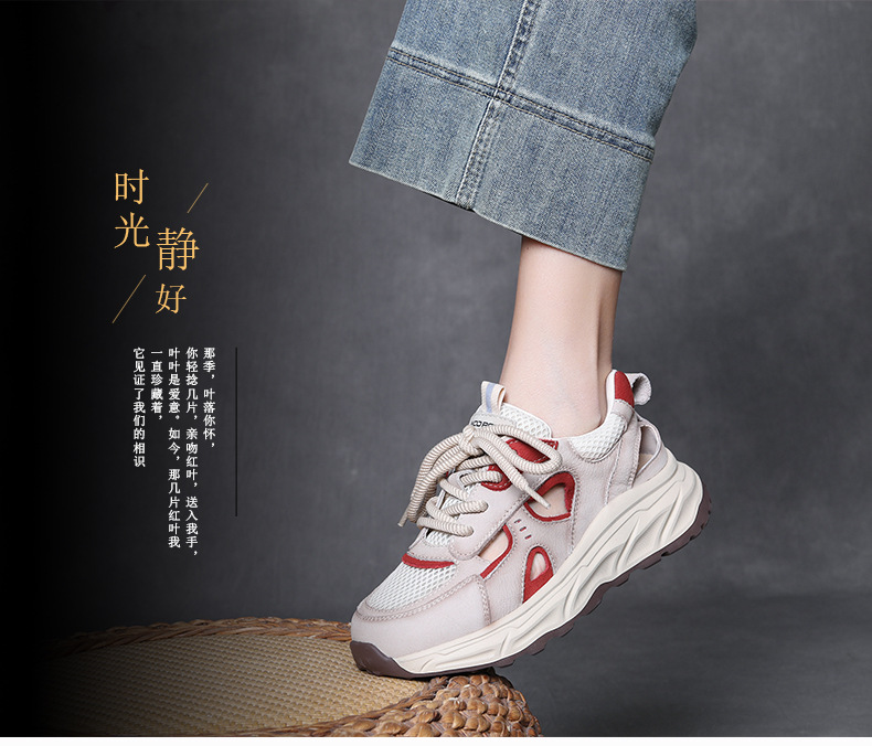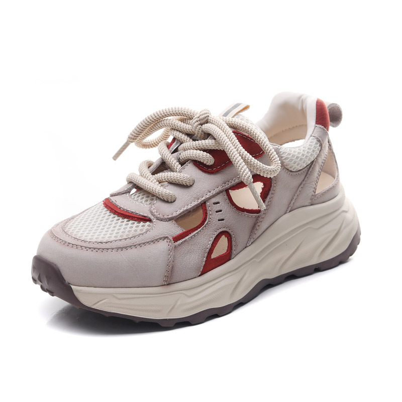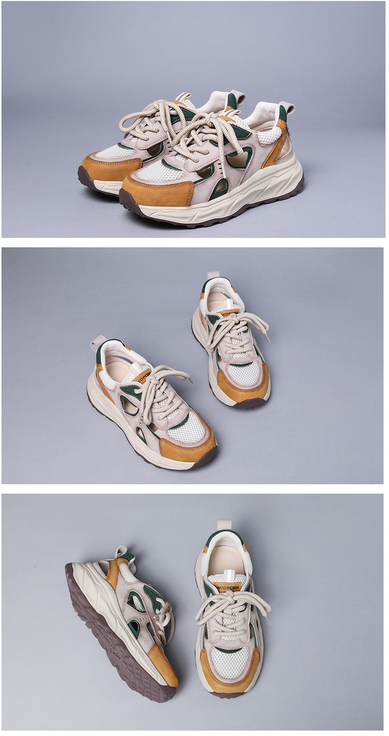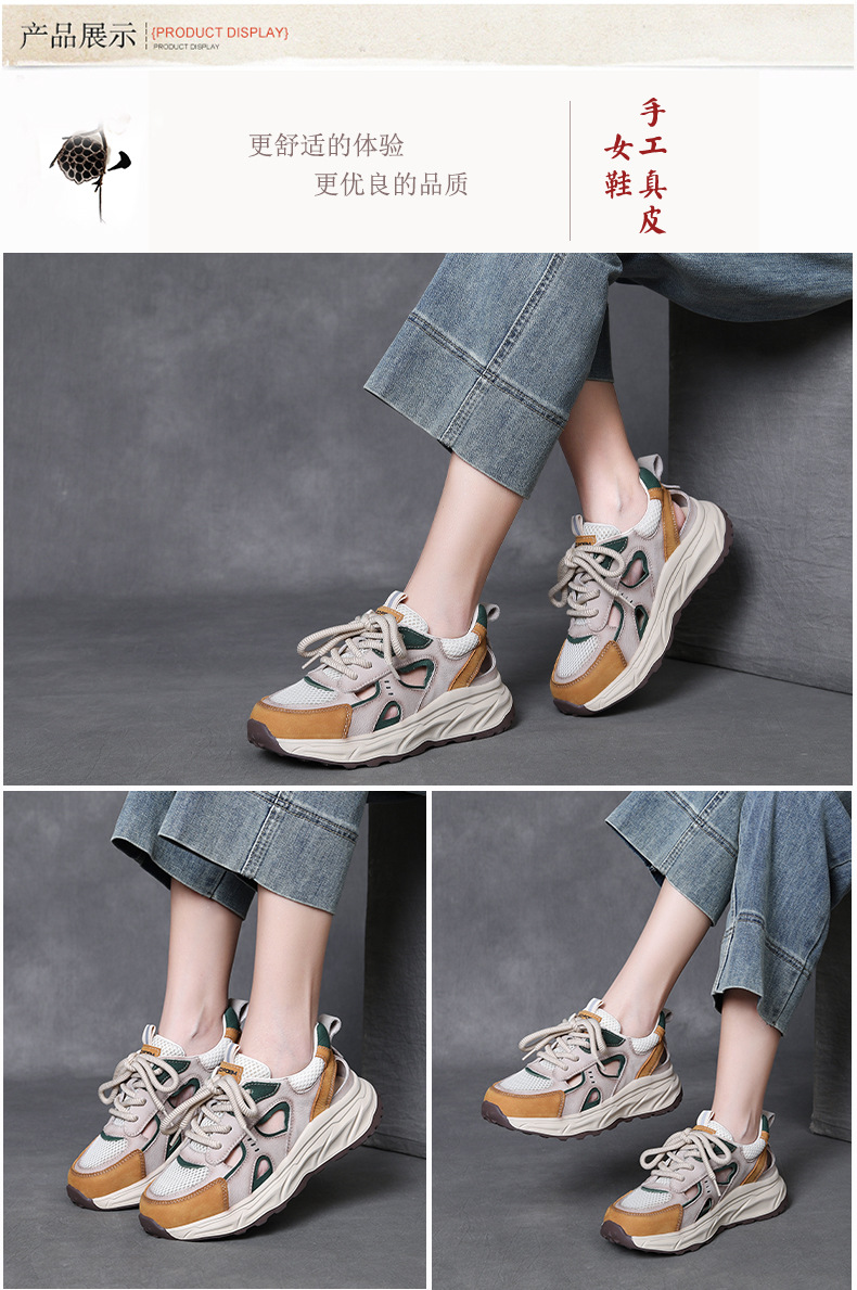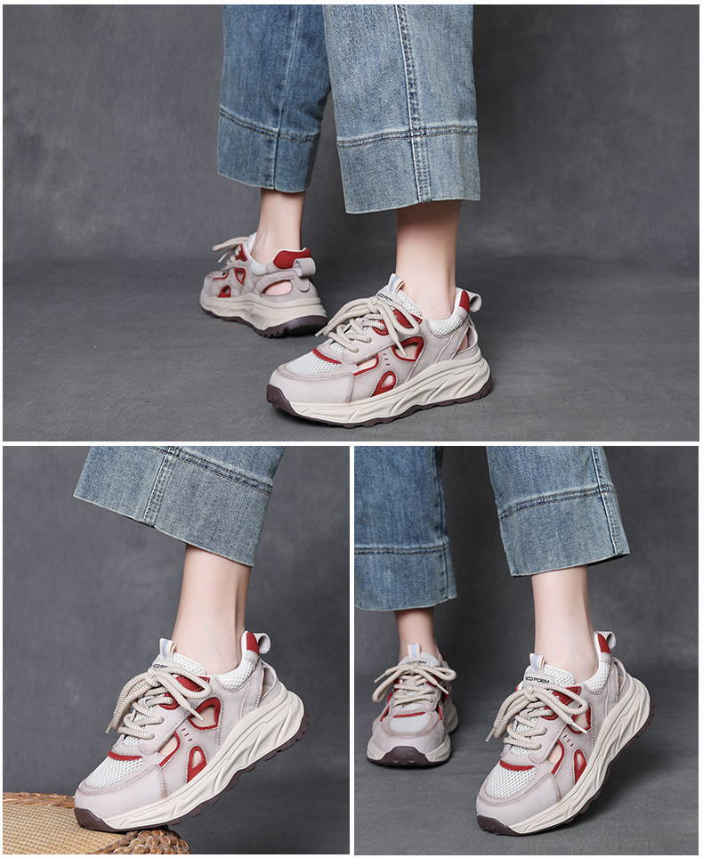 Jishu 2025 새로운 1층 소가죽 중공 메쉬 신발, 편안하고 부드러운 밑창 여성 신발, 여성용 정품 가죽 레이스 업 컬러 매칭 운동화스토어 가기