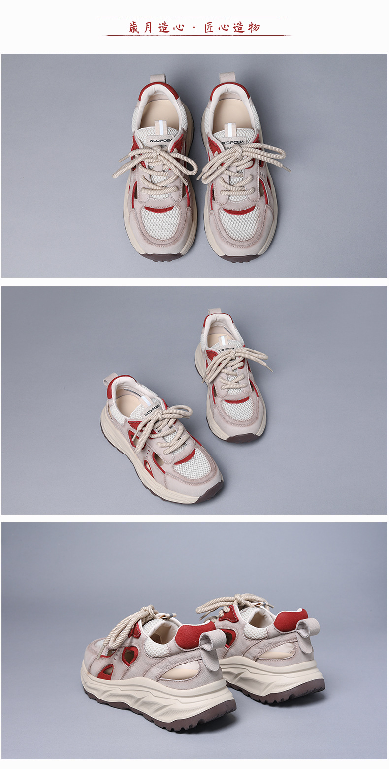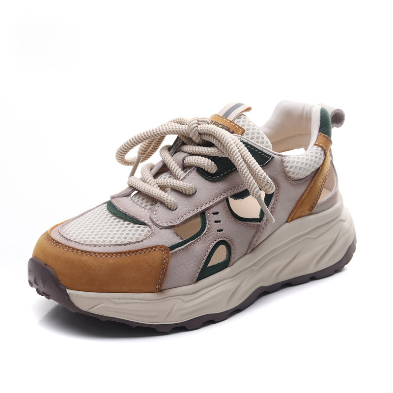 Jishu 2025 새로운 1층 소가죽 중공 메쉬 신발, 편안하고 부드러운 밑창 여성 신발, 여성용 정품 가죽 레이스 업 컬러 매칭 운동화