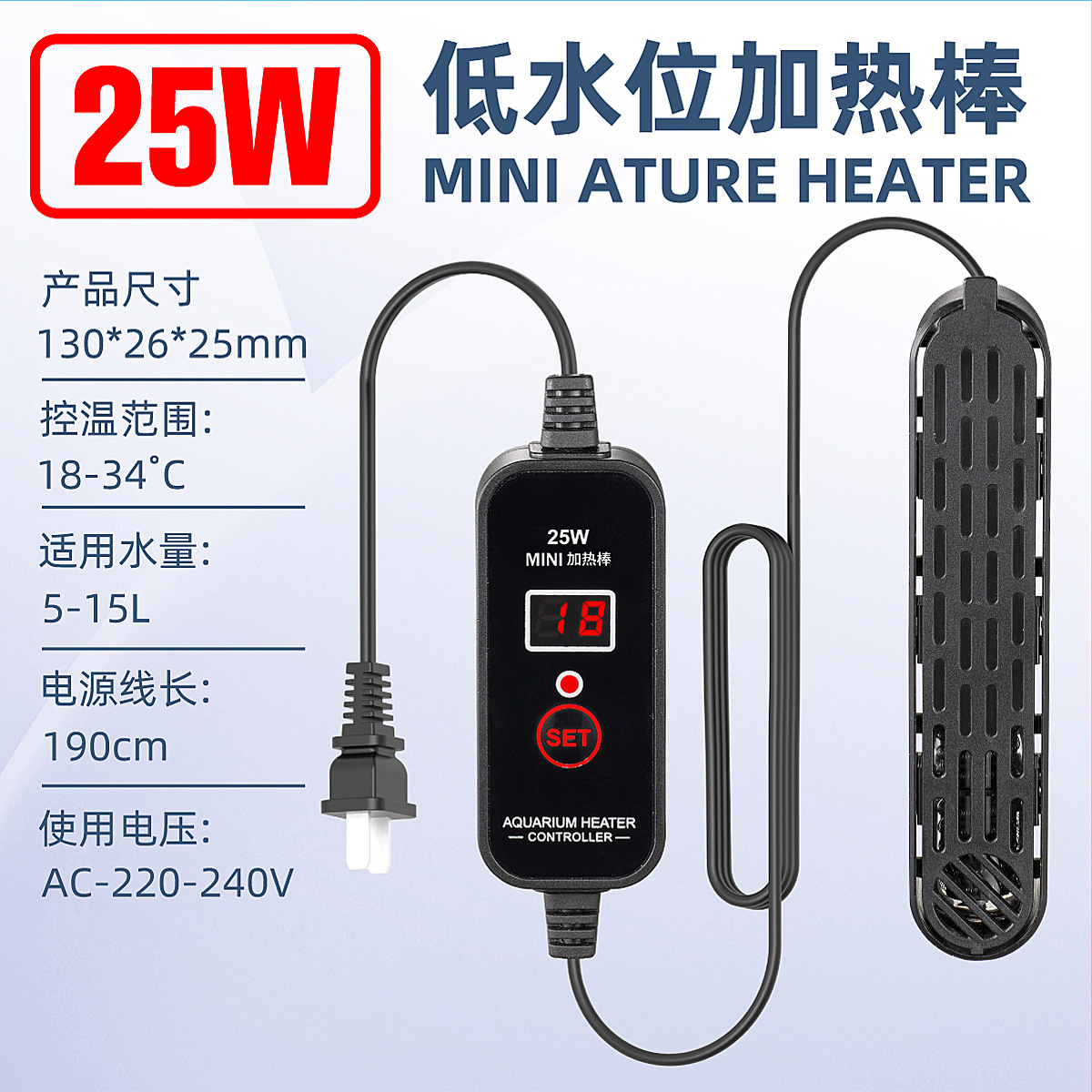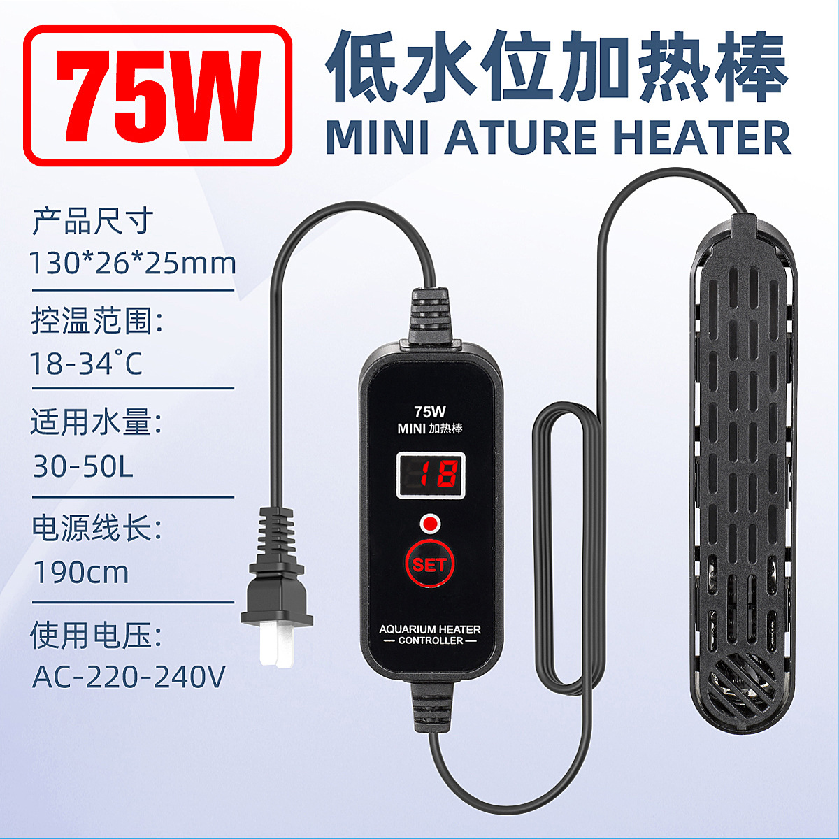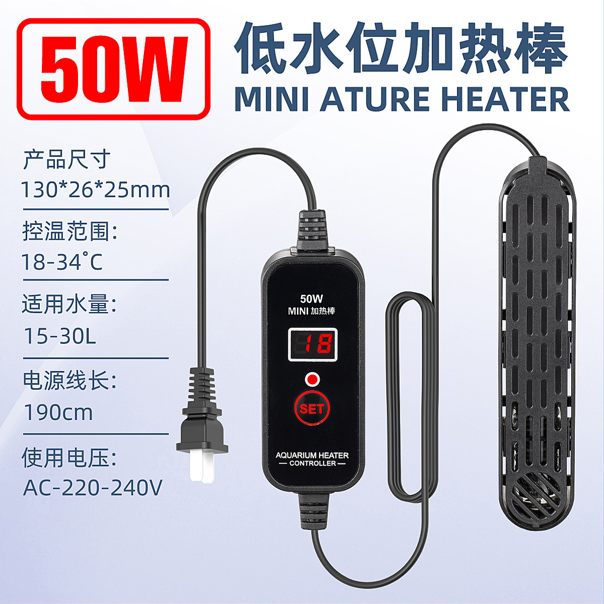 Quanlong 미니 가열 막대 디지털 디스플레이 조절 가능한 온도 낮은 수위 거북이 가열 막대 보호 커버가있는 방폭형 석영 유리