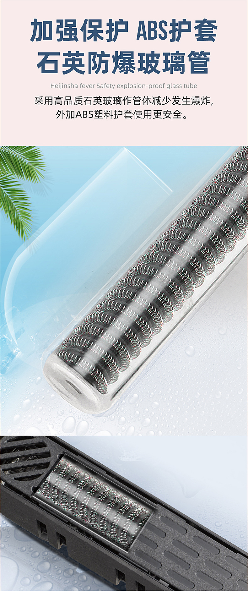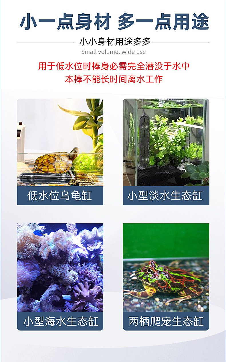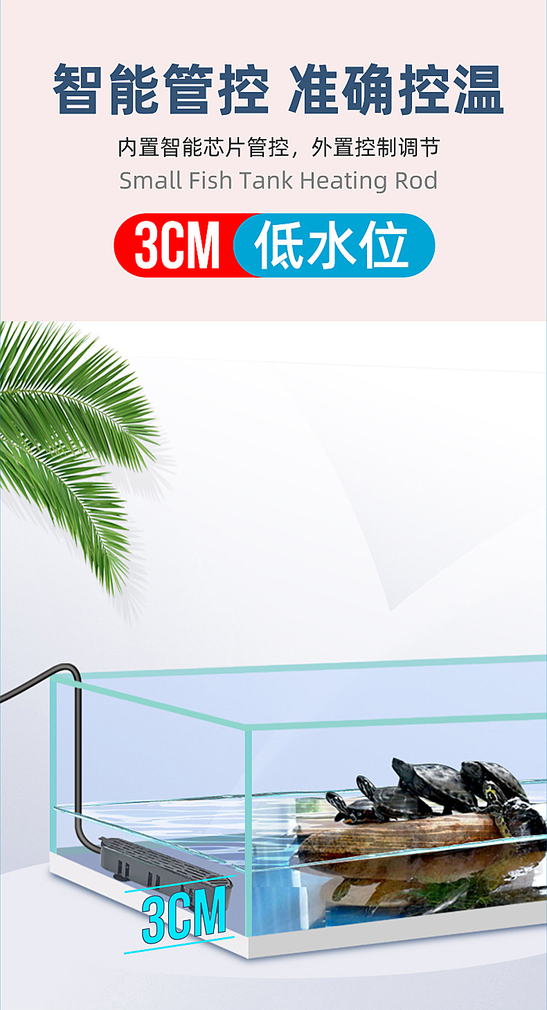 Quanlong 미니 가열 막대 디지털 디스플레이 조절 가능한 온도 낮은 수위 거북이 가열 막대 보호 커버가있는 방폭형 석영 유리