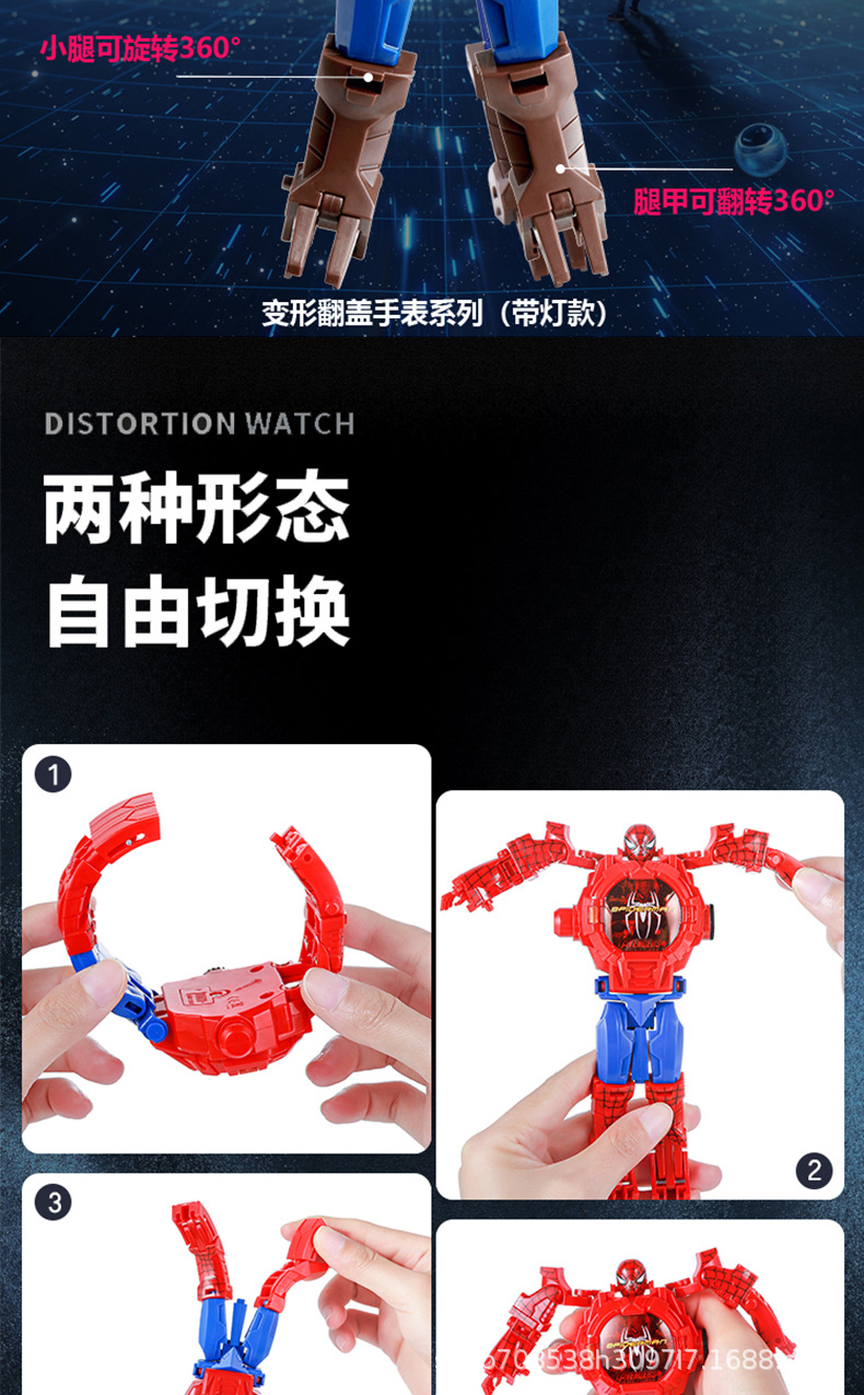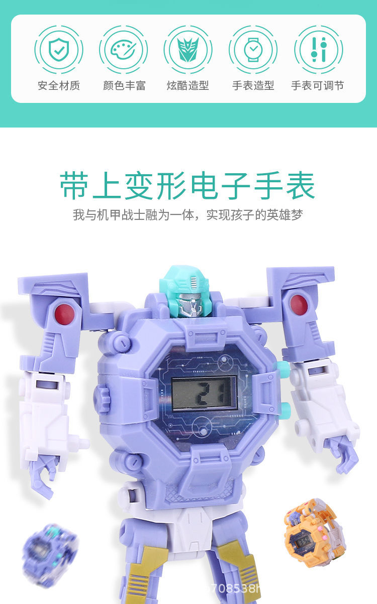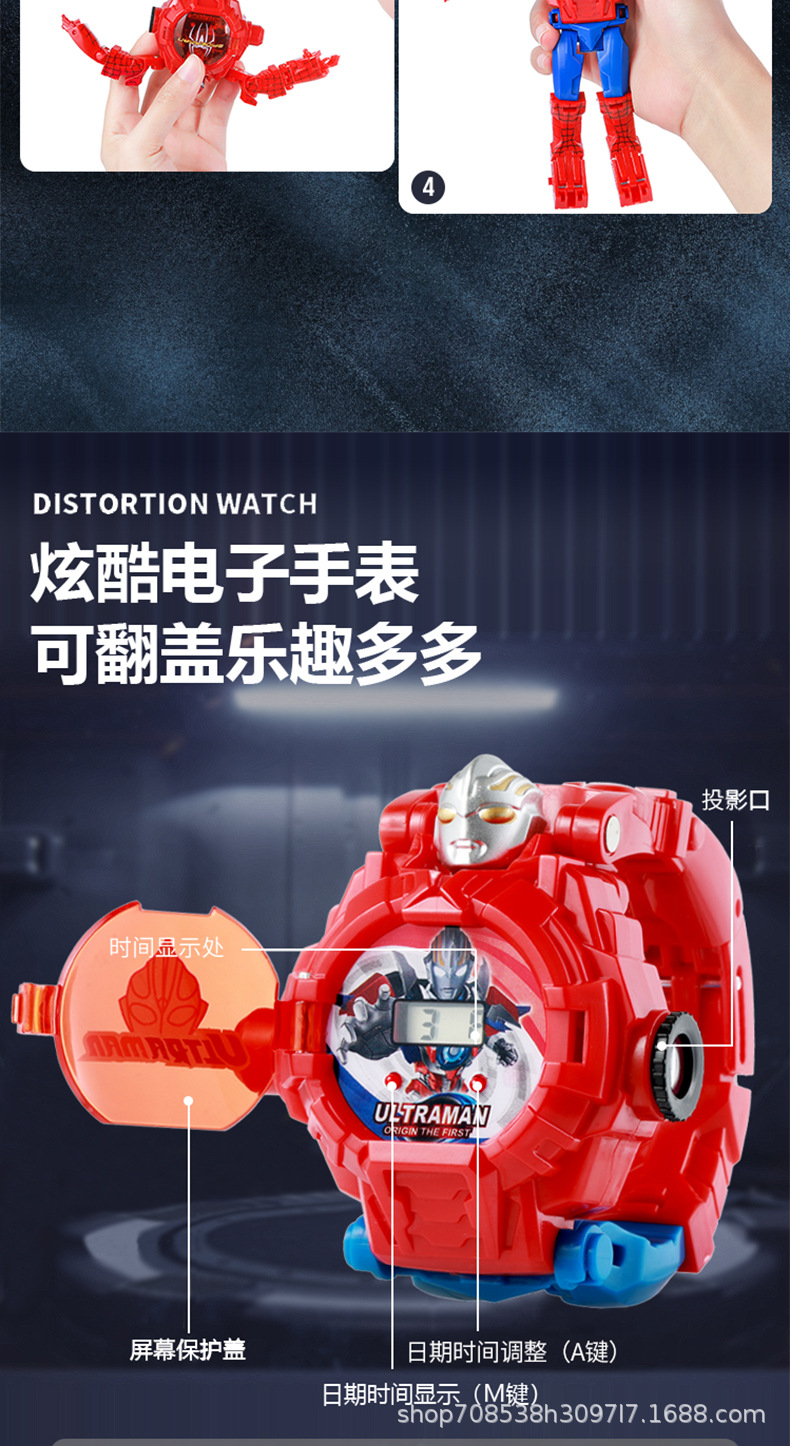 변형 가능한 어린이 전자 시계 장난감 학생 프로젝션 만화 변형 Manwei 변형 로봇 소년 어린이 시계