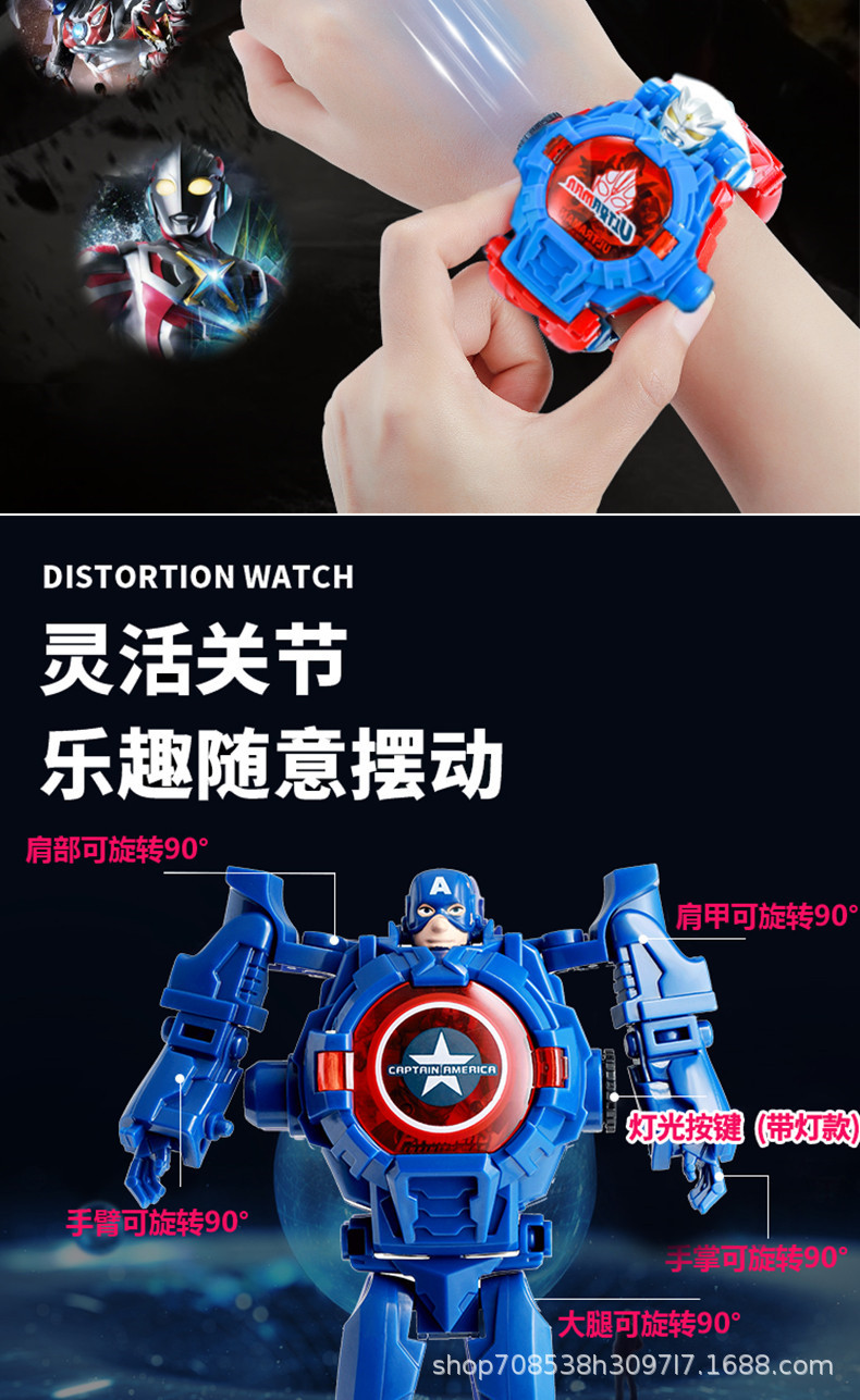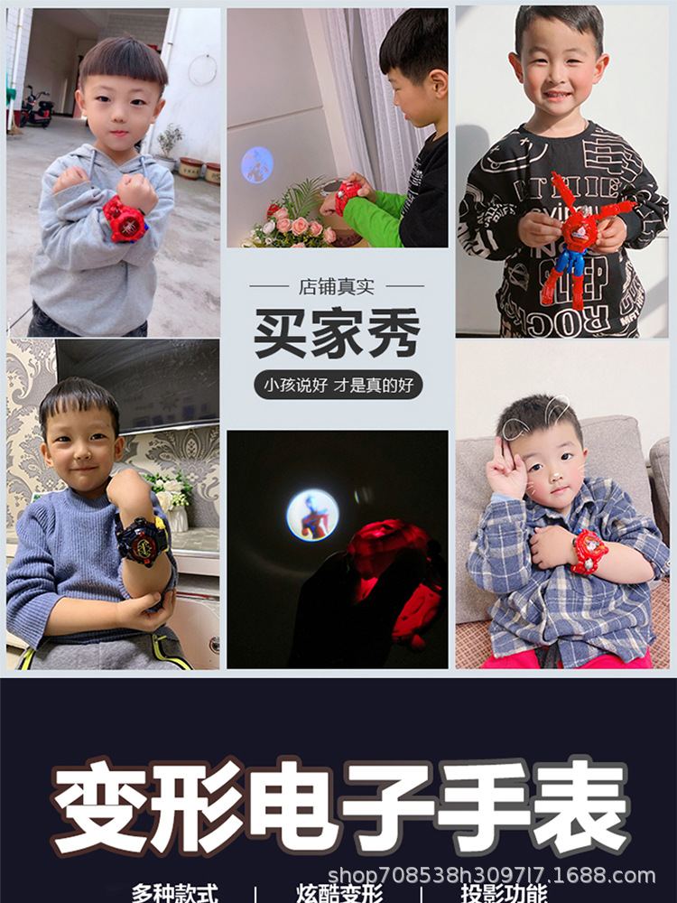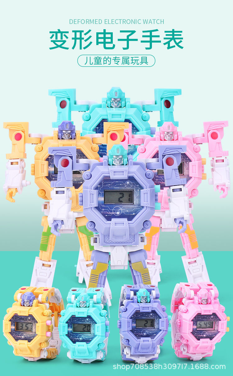 변형 가능한 어린이 전자 시계 장난감 학생 프로젝션 만화 변형 Manwei 변형 로봇 소년 어린이 시계스토어 가기