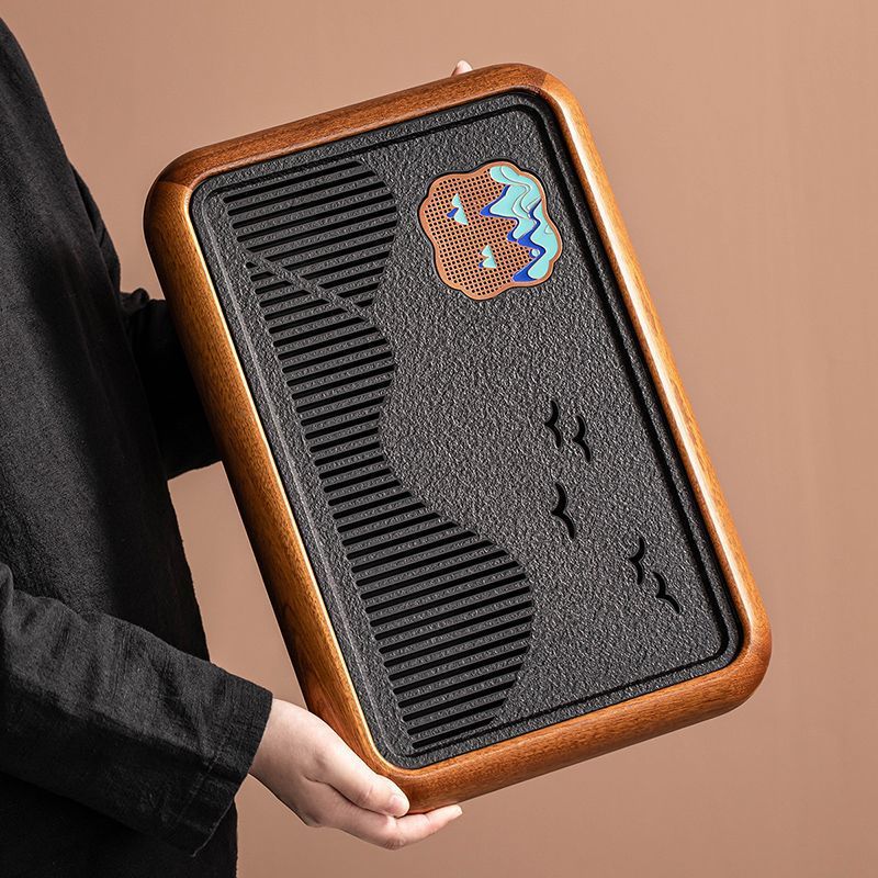 • 나무 프레임 - 대형 모조 흑금 자석 구름 관찰 및 차 트레이 54cm