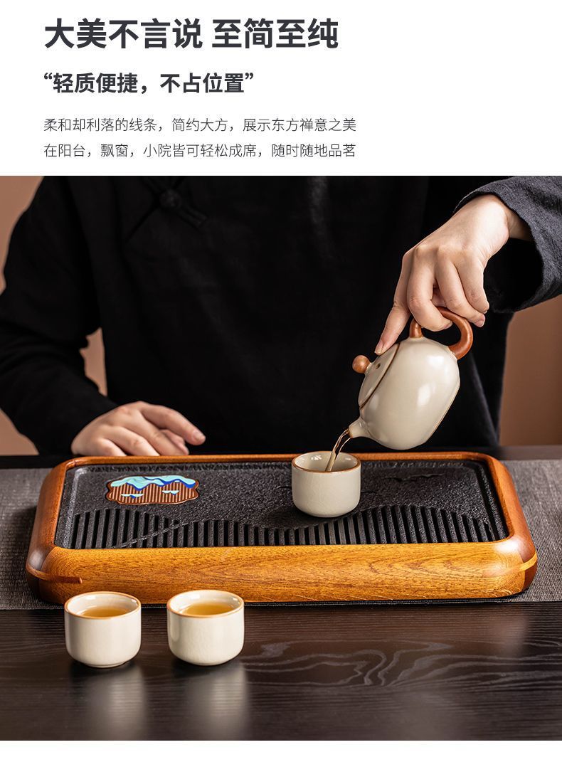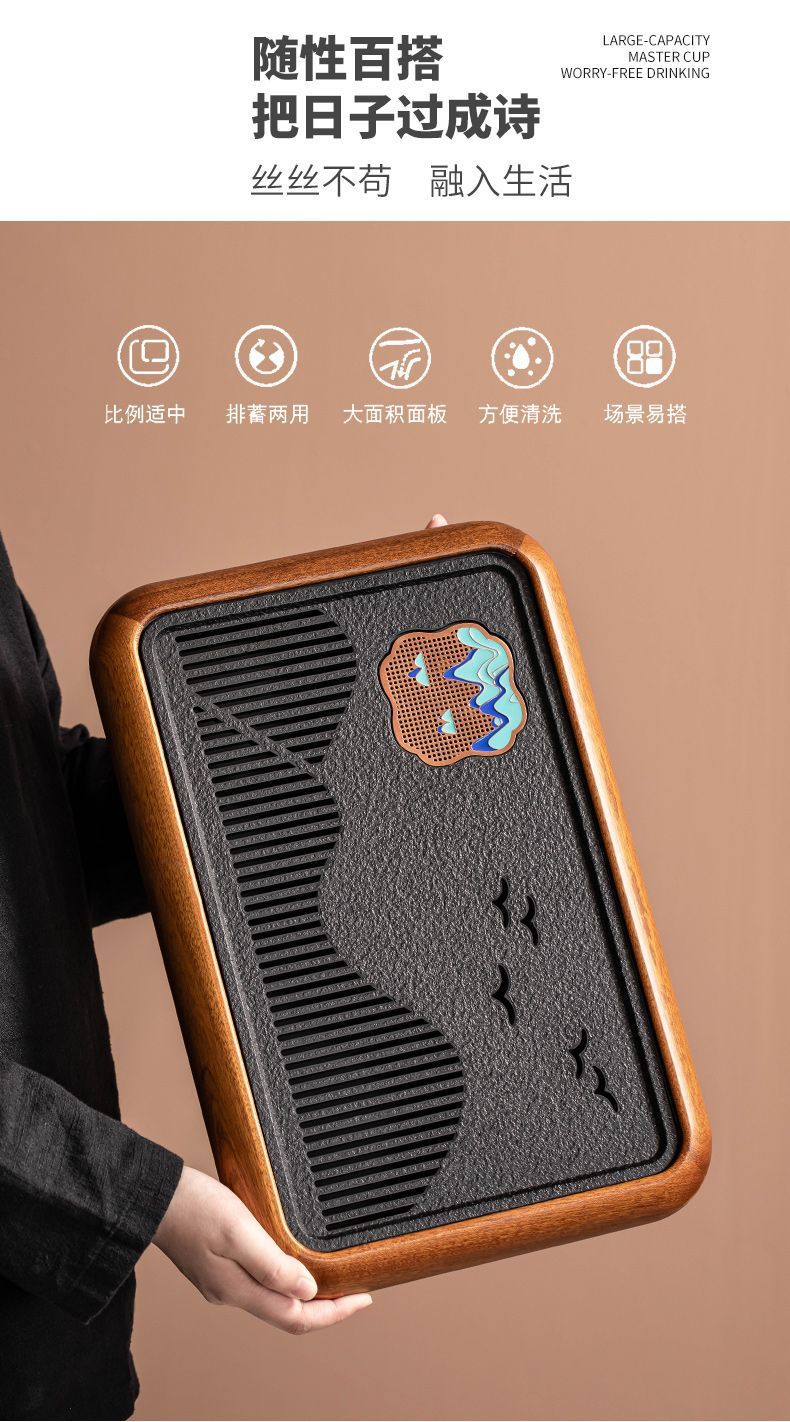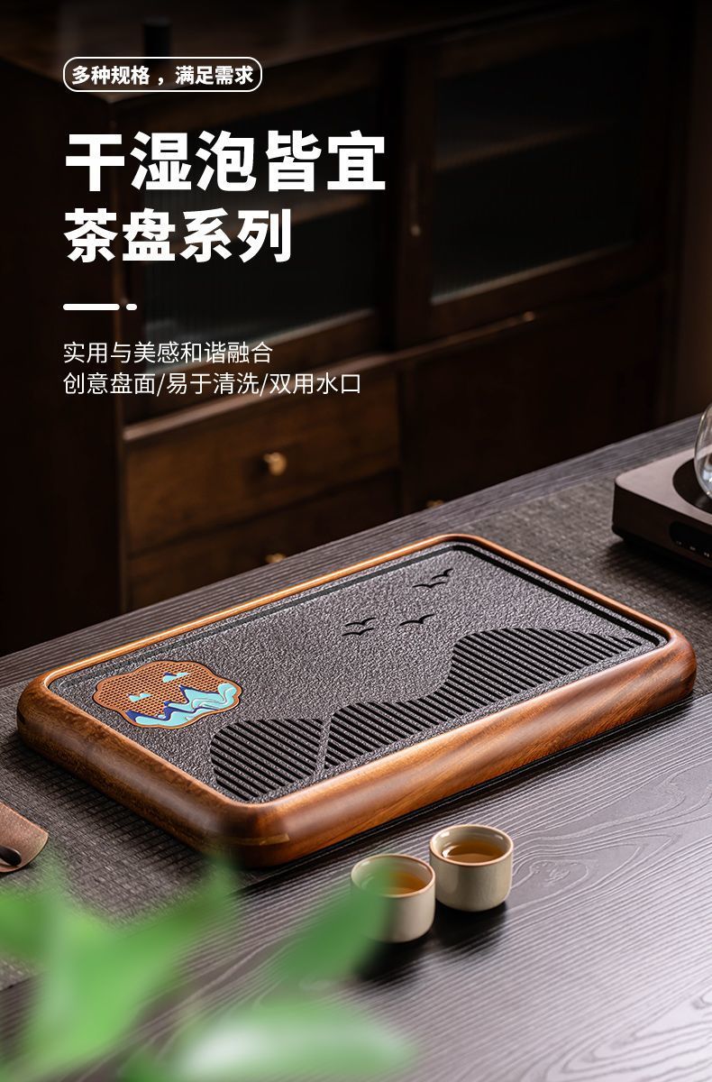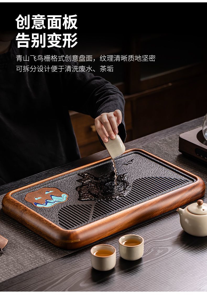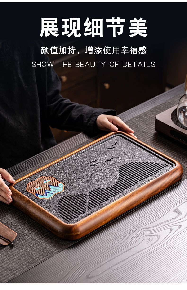 검은 금 도자기 스톤 티 트레이 가정용 차 세트 티 테이블 물 저장 및 배수 건식 버블 테이블 스톤 라이트 럭셔리 현대 트레이 단단한 나무
