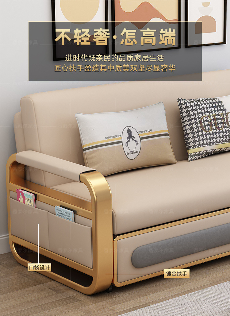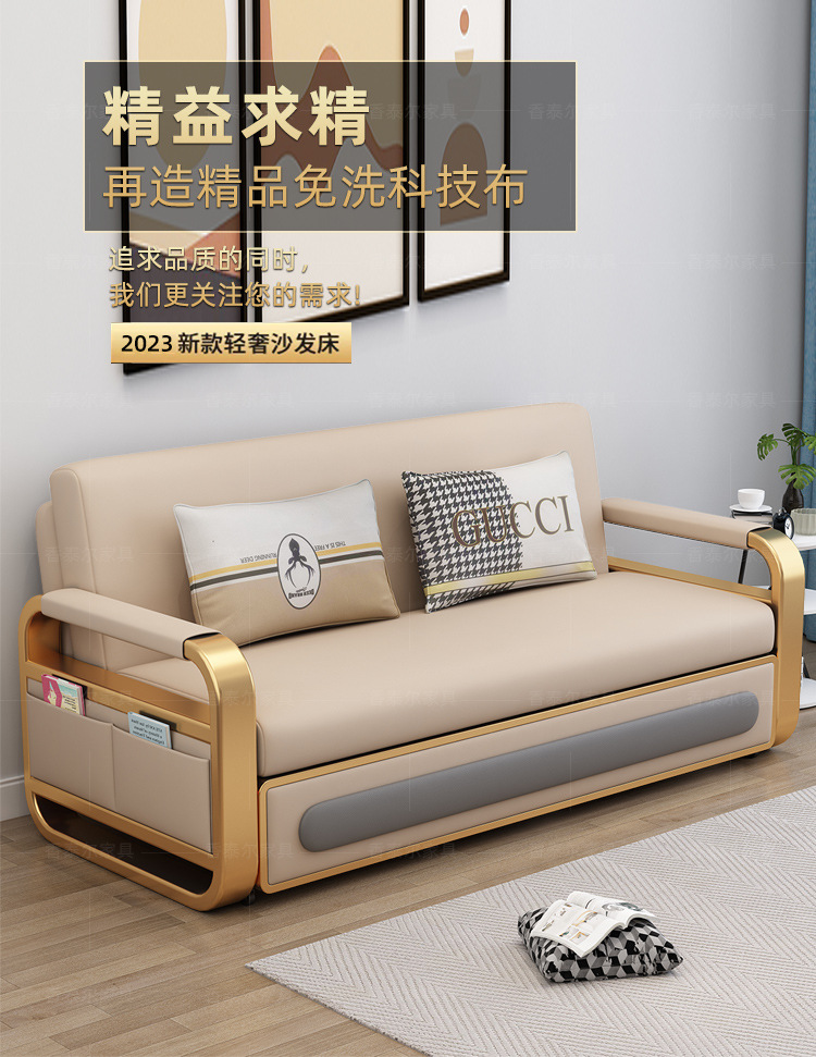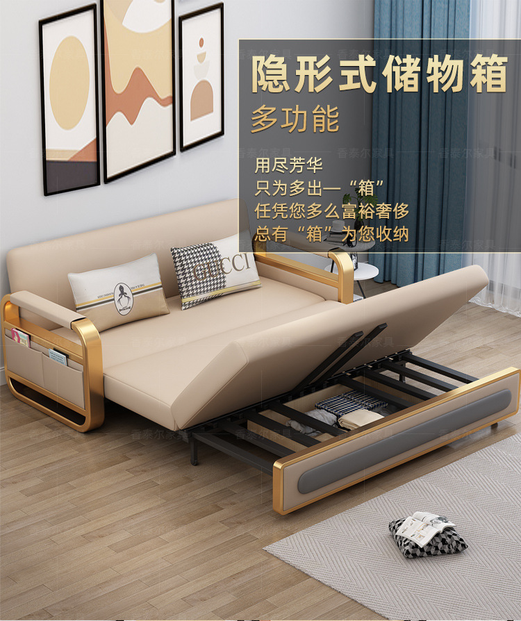 소파 베드 이중 목적 라이트 럭셔리 기술 천 접이식 다기능 거실 작은 아파트 개폐식 슬라이딩 단단한 나무 보관함