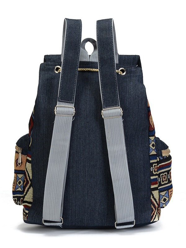 제조업체 공급 여행용 백팩 여성용 2025 신상 패션 민족풍 배색 데님 캔버스 캐주얼 가방
