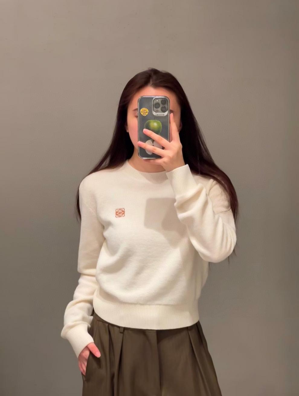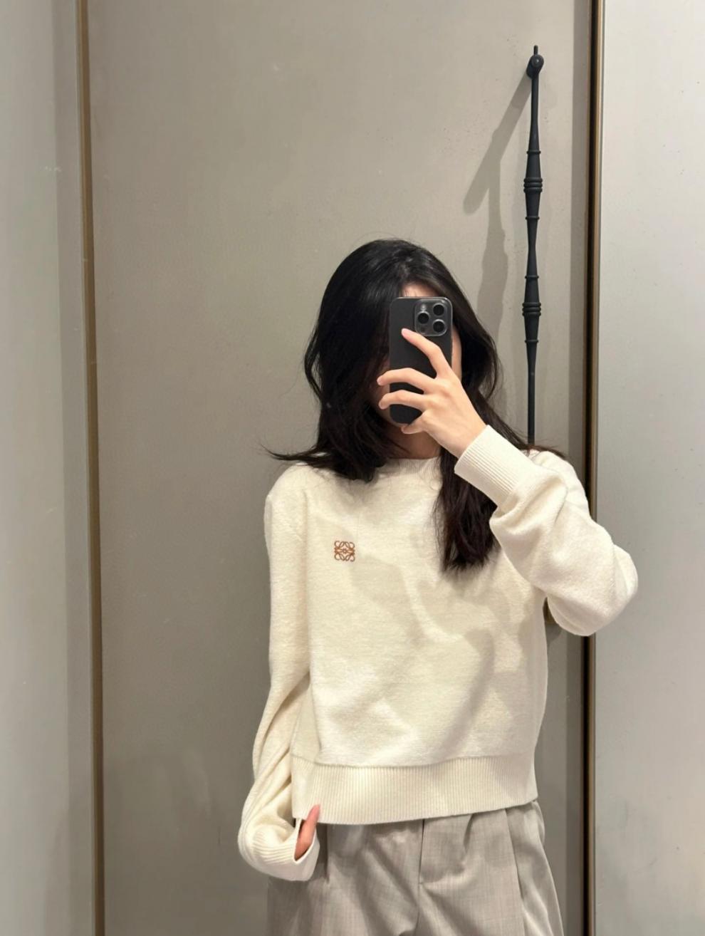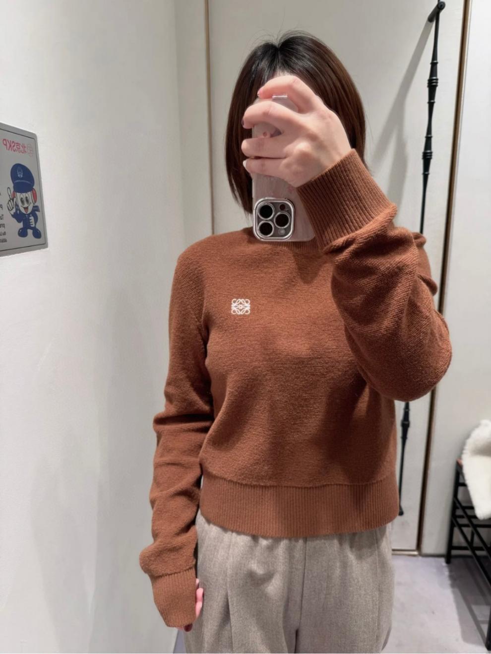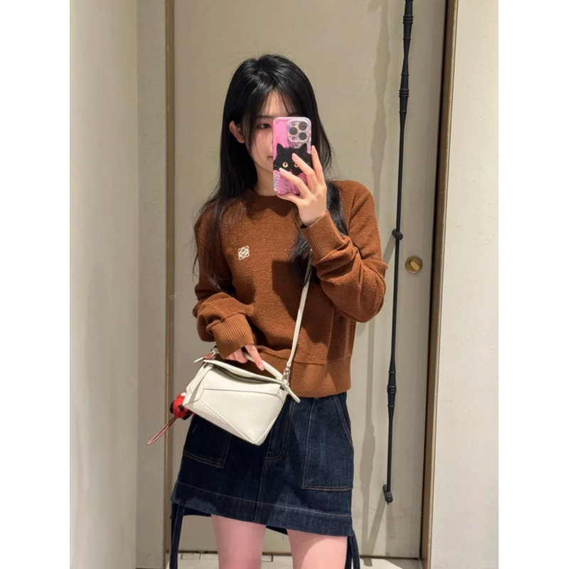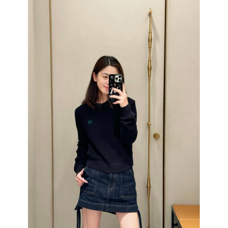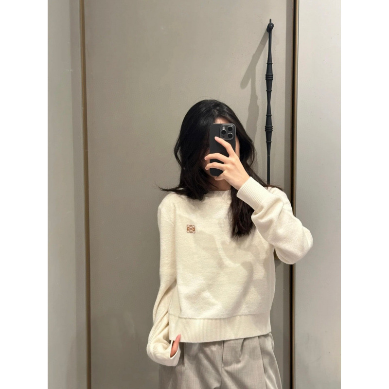 25년 숏 스타일 슬림핏 긴팔 라운드넥 니트 스웨터 여성용 이너웨어 자수 로고/자수 장식 얇은 스타일스토어 가기