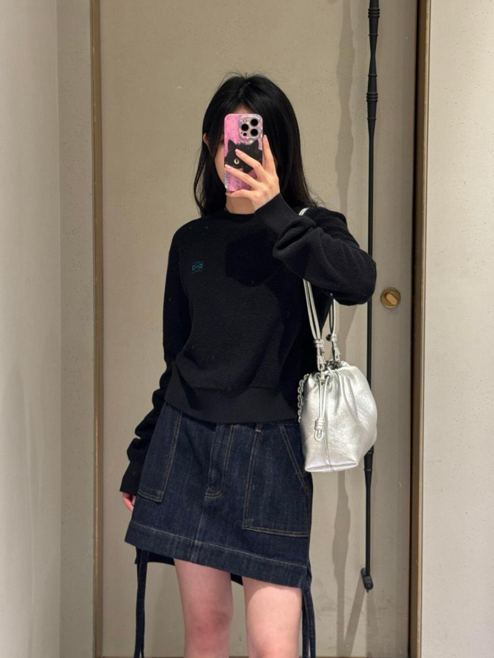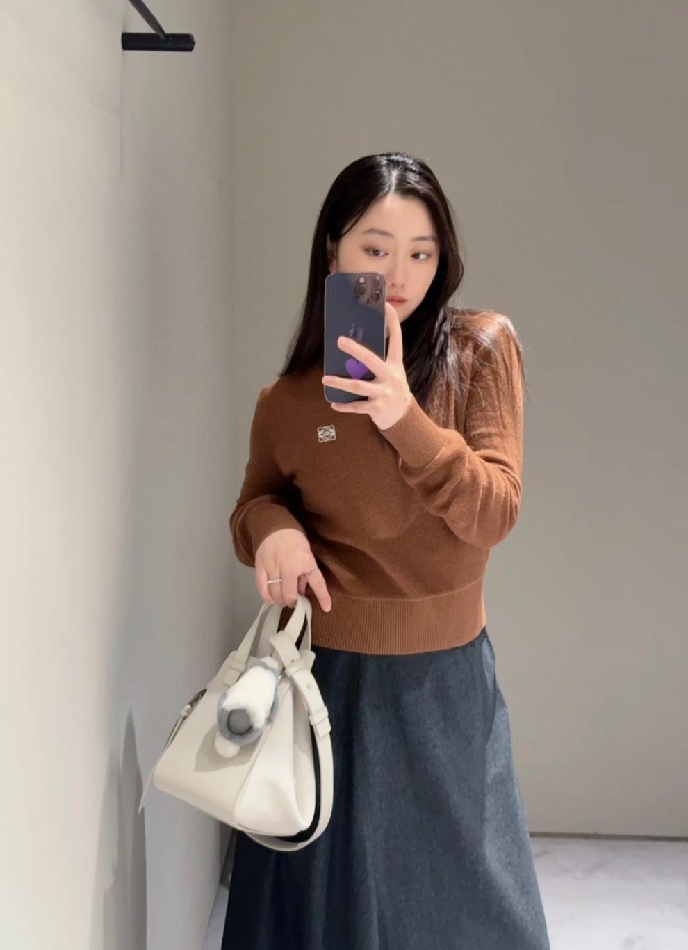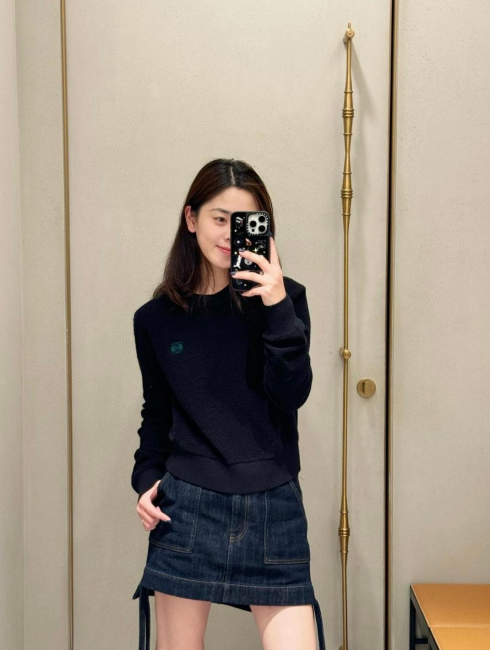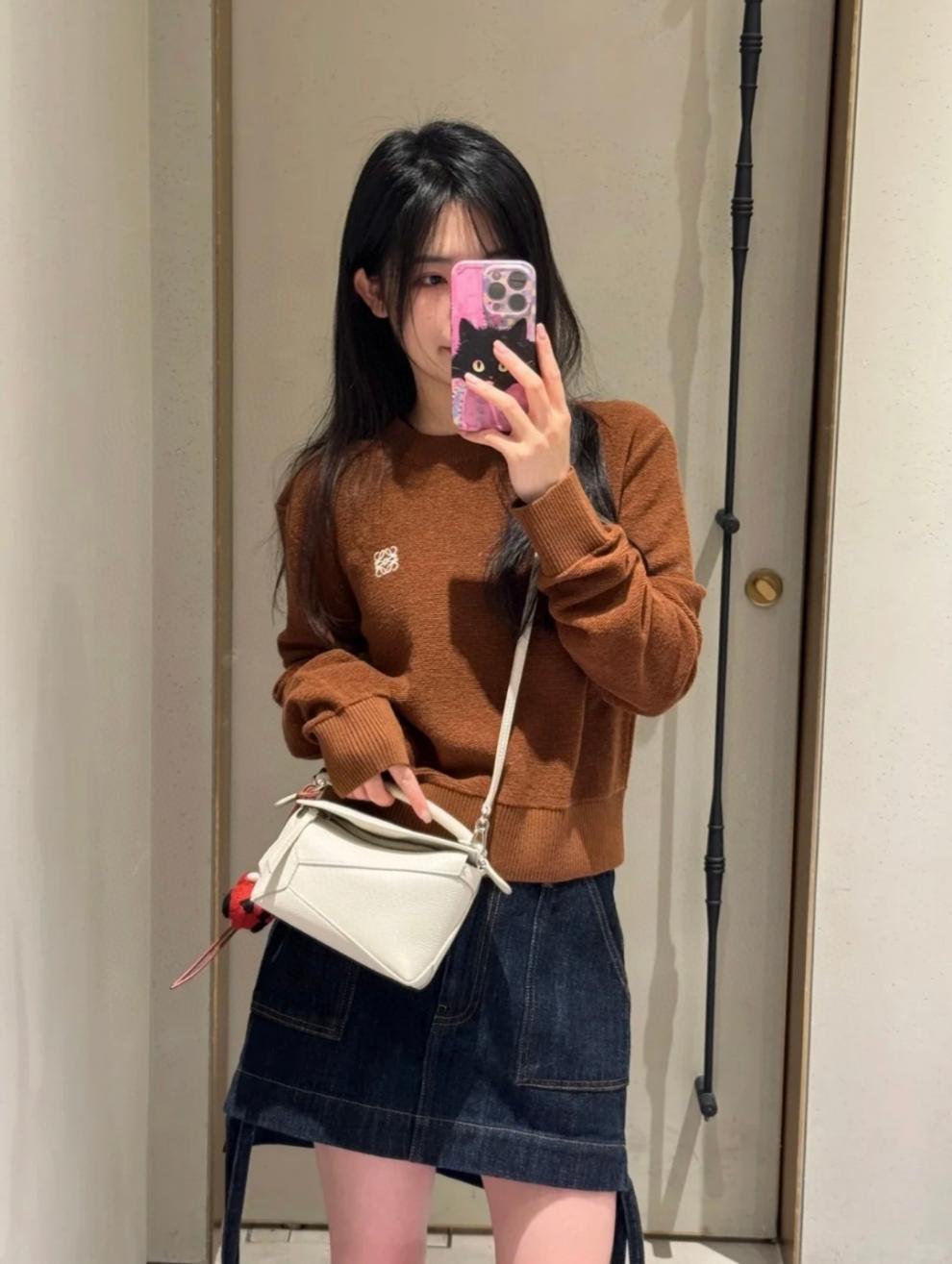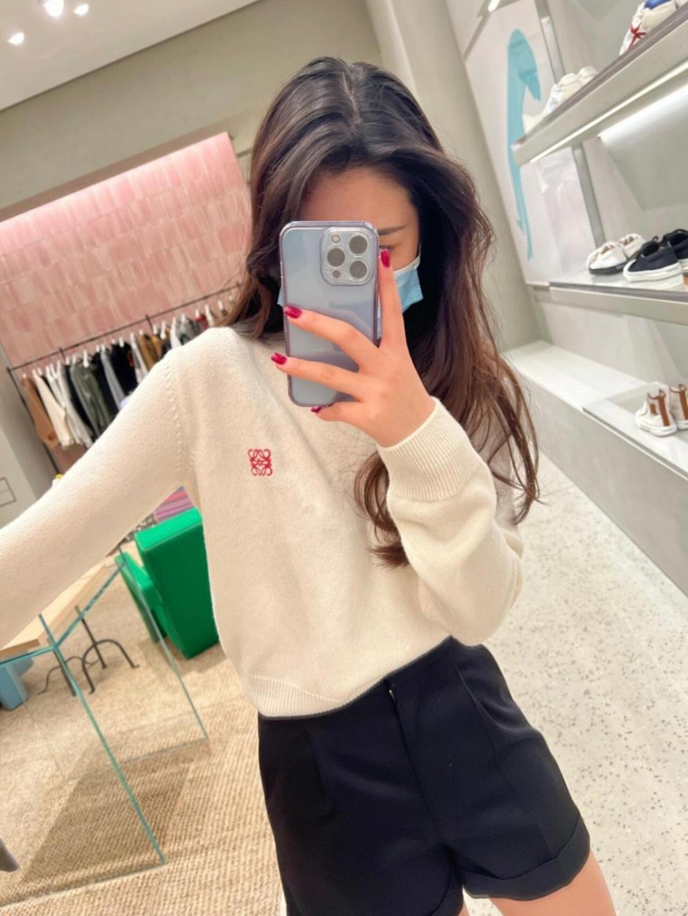 25년 숏 스타일 슬림핏 긴팔 라운드넥 니트 스웨터 여성용 이너웨어 자수 로고/자수 장식 얇은 스타일스토어 가기