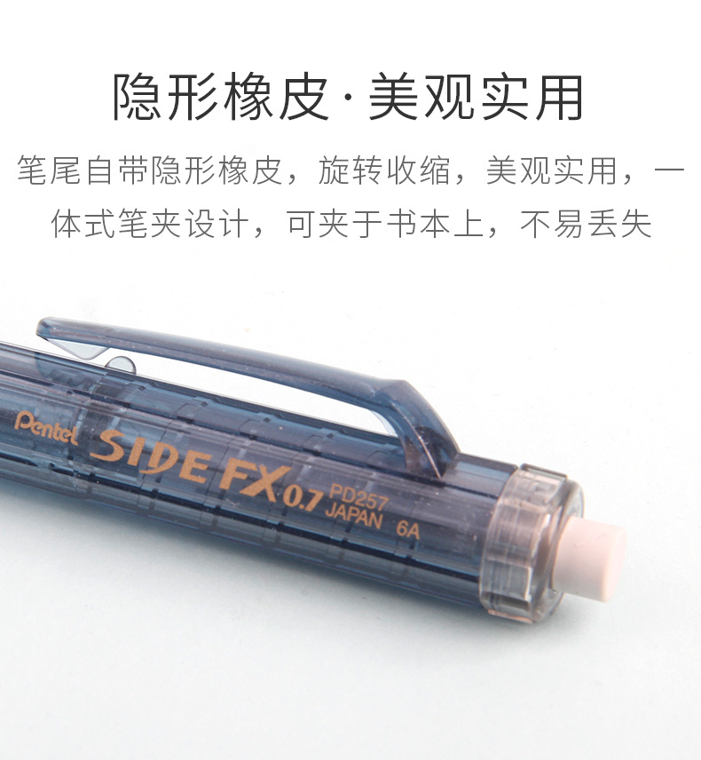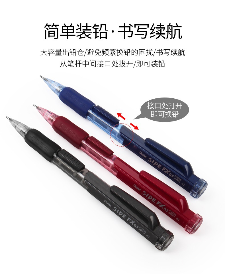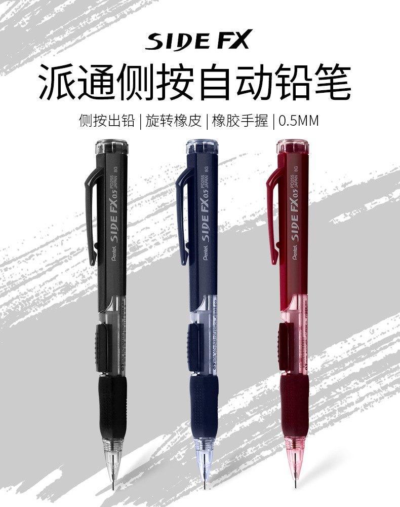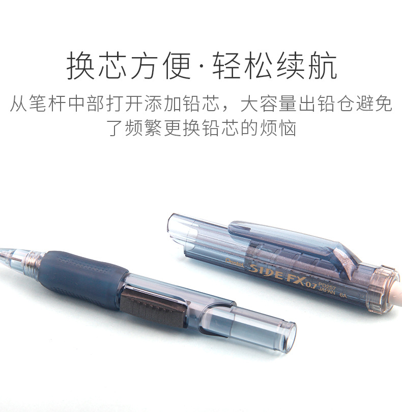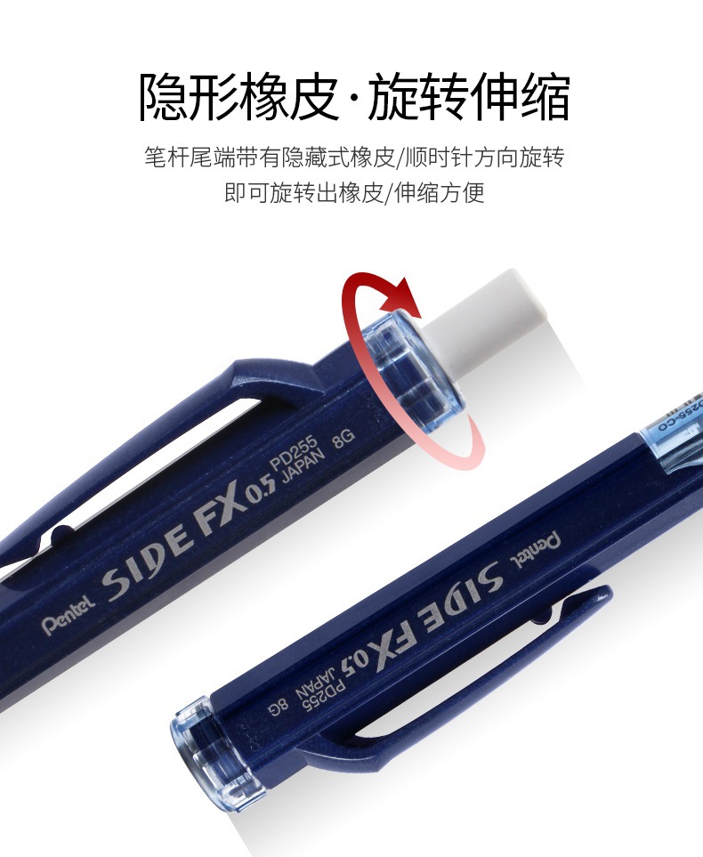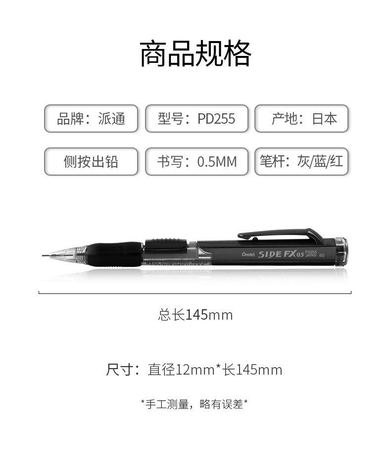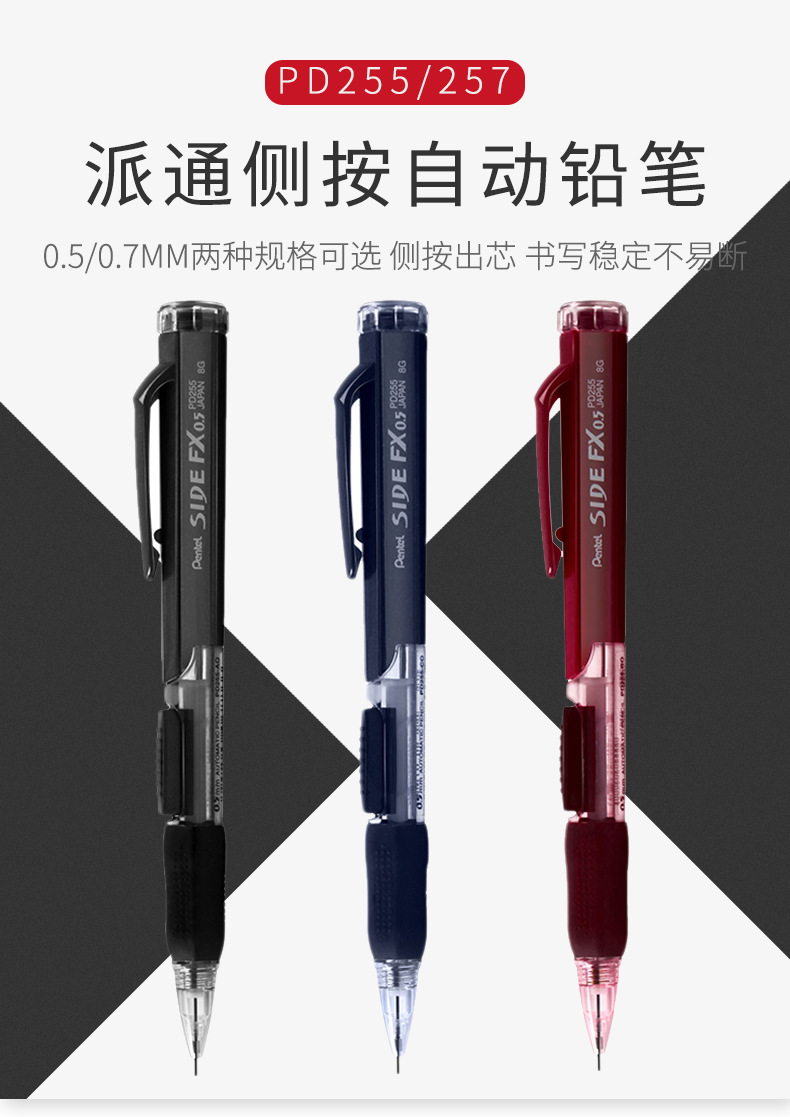 일본 펜텔 이벤트 펜 자동 연필 PD255 측면 프레스 0.5 고무 개폐식 코어가 부러지기 쉽지 않음스토어 가기