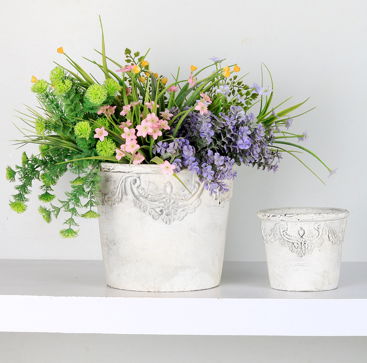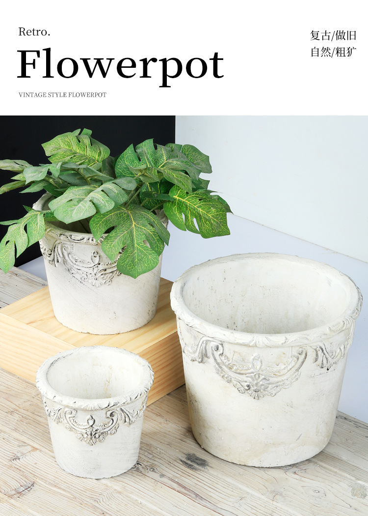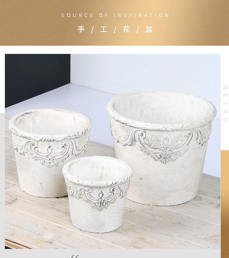 수제 양각 복고풍 유럽 시멘트 화분 홈 심기 화분 안뜰 정원 장식 고급 창조적 인 화분