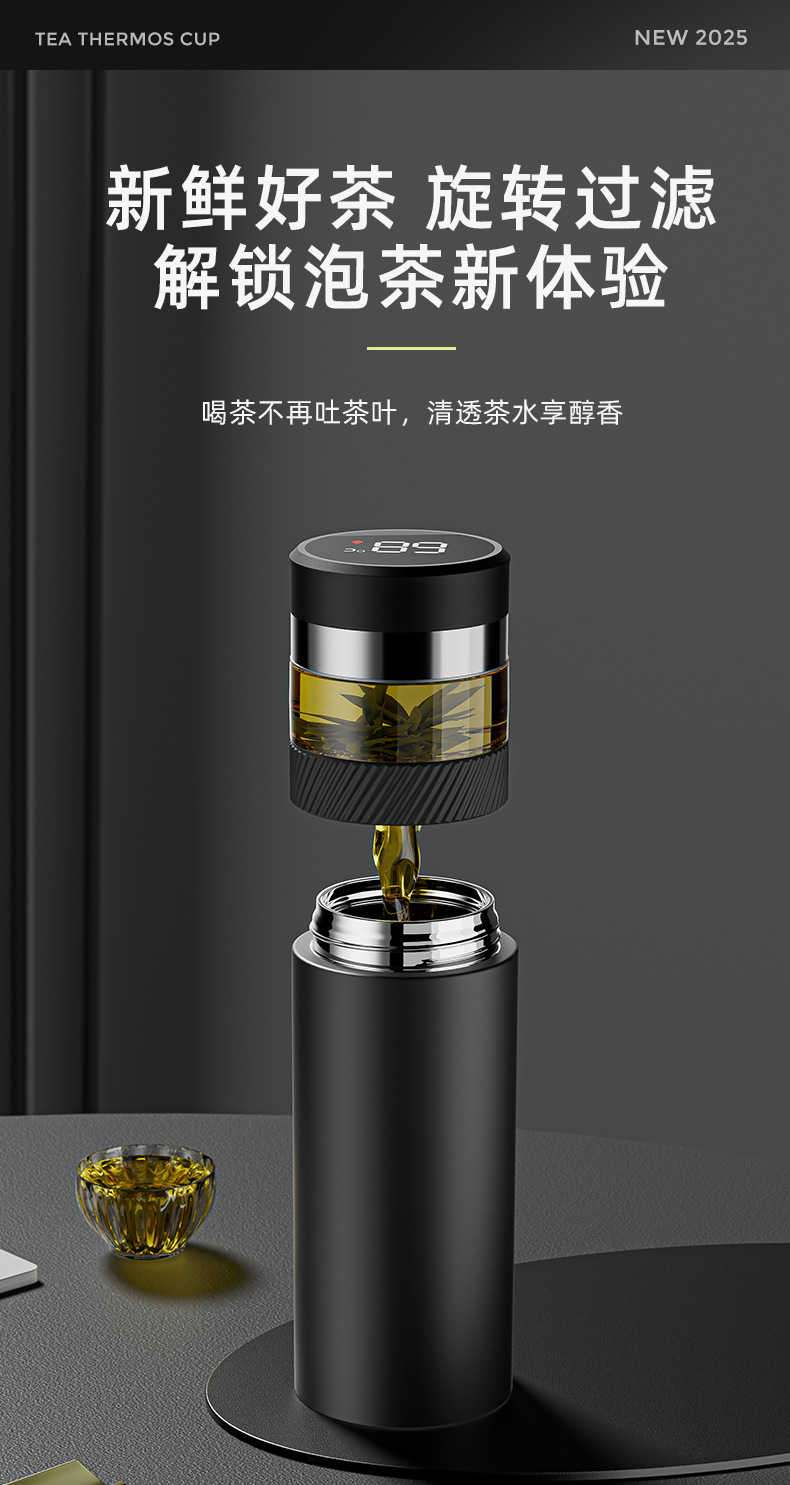 2025 새로운 스타일의 남성용 및 여성용 보온병 컵, 차와 물 분리 찻잔, 휴대용 선물 로고 각인 물컵