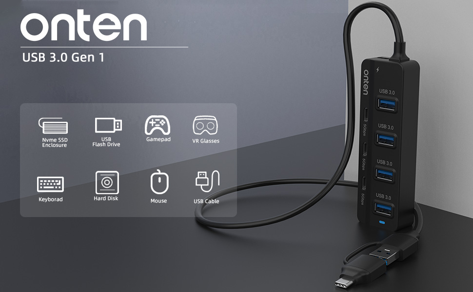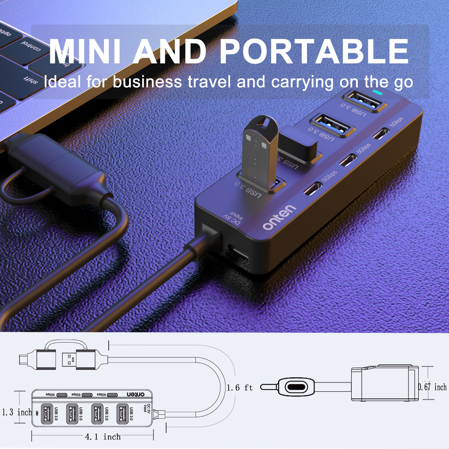 Apple 노트북 Macbook에 적합한 7포트 허브는 usb3.2 고속 장거리 분배기를 확장합니다.
