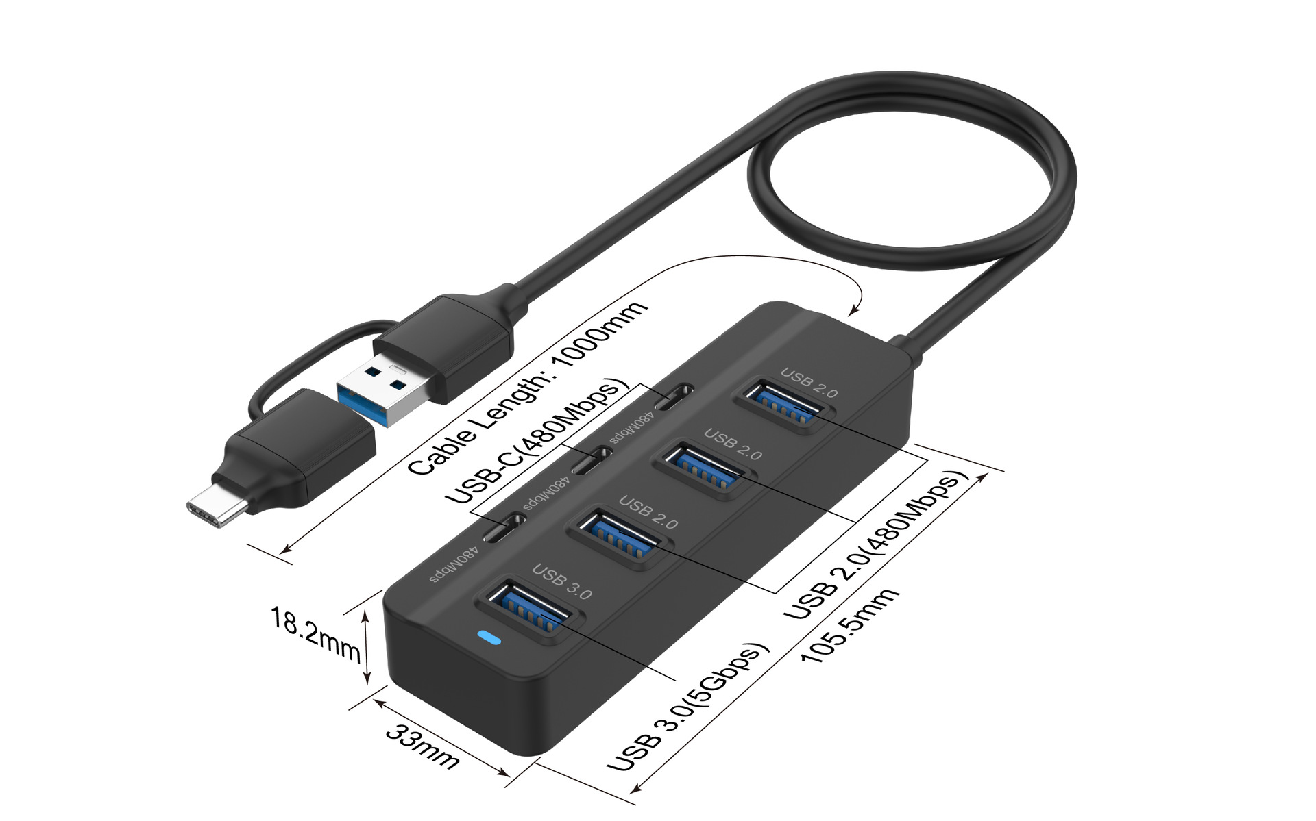 7口集线器适用苹果笔记本电脑Macbook拓展usb3.2高速长线款分线器