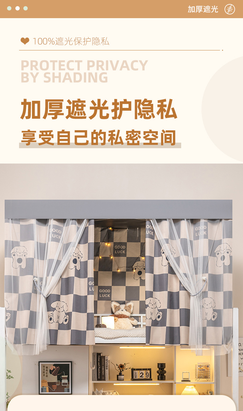 학생 기숙사 침대 커튼 맞춤형 모기장 지퍼가 달린 침실 이층 침대 커튼으로 강한 빛을 차단합니다. 기숙사 침대 커튼 모기장스토어 가기