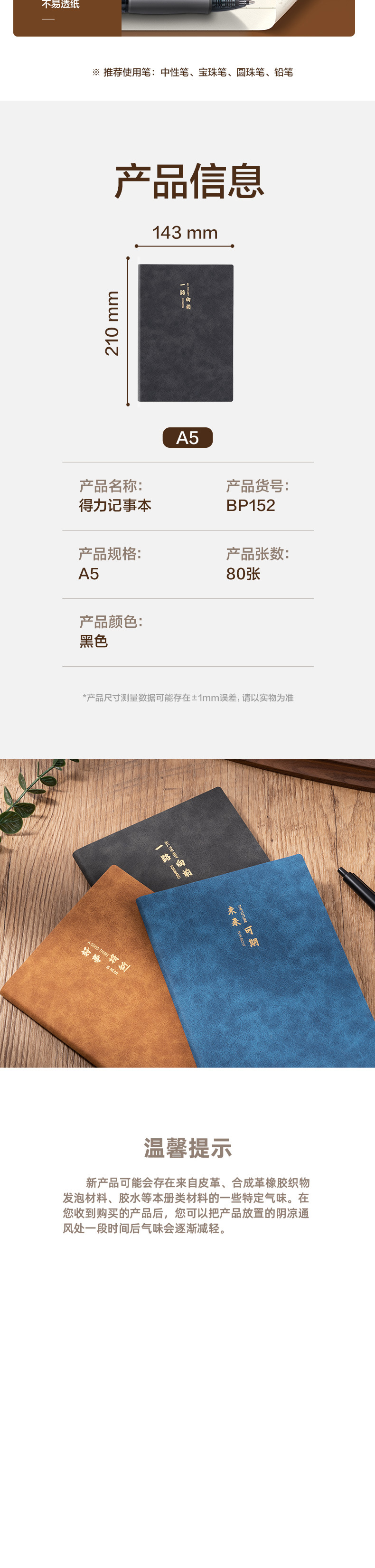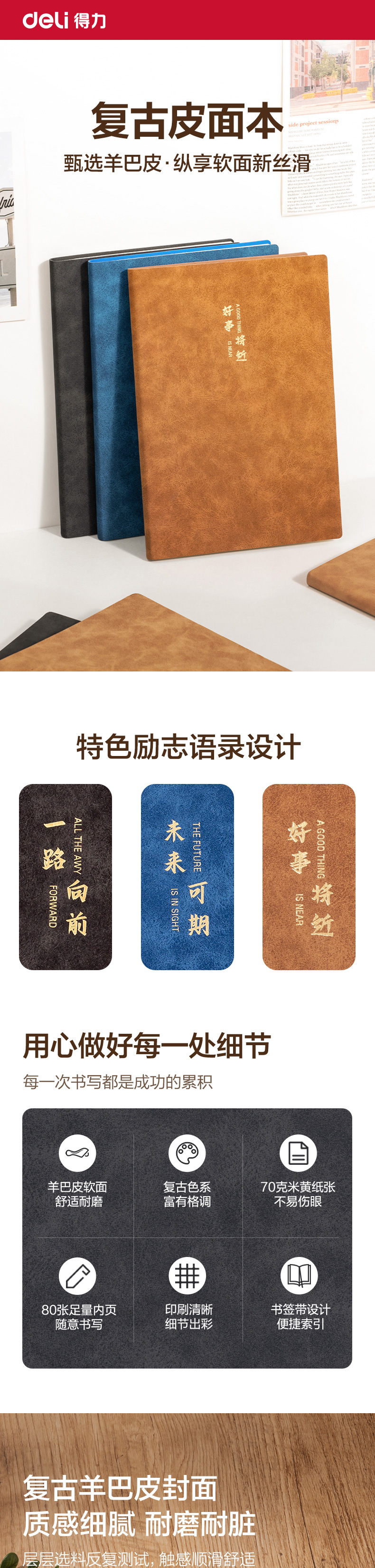 델리 BP152 노트 양가죽 메모장 a5 부드러운 가죽 비즈니스 회의 기록부 가죽 표지 80매