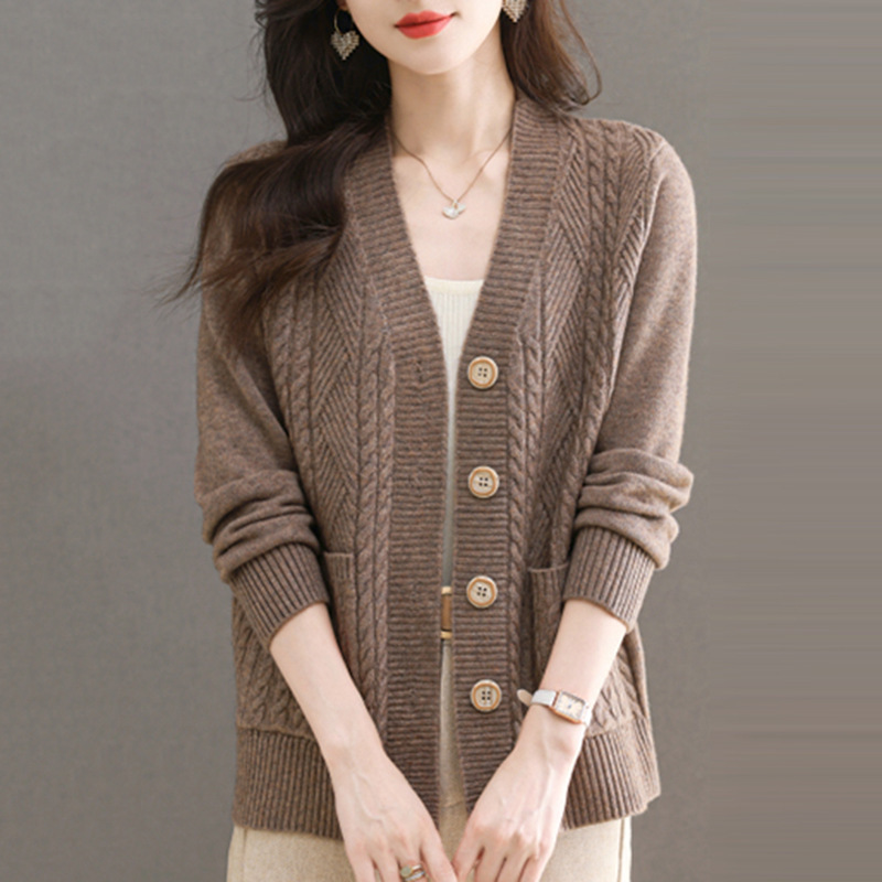 여성을위한 가을 패션 니트 카디건 2025 가을, 겨울 새로운 두꺼운 중년 어머니 느슨한 스웨터 재킷