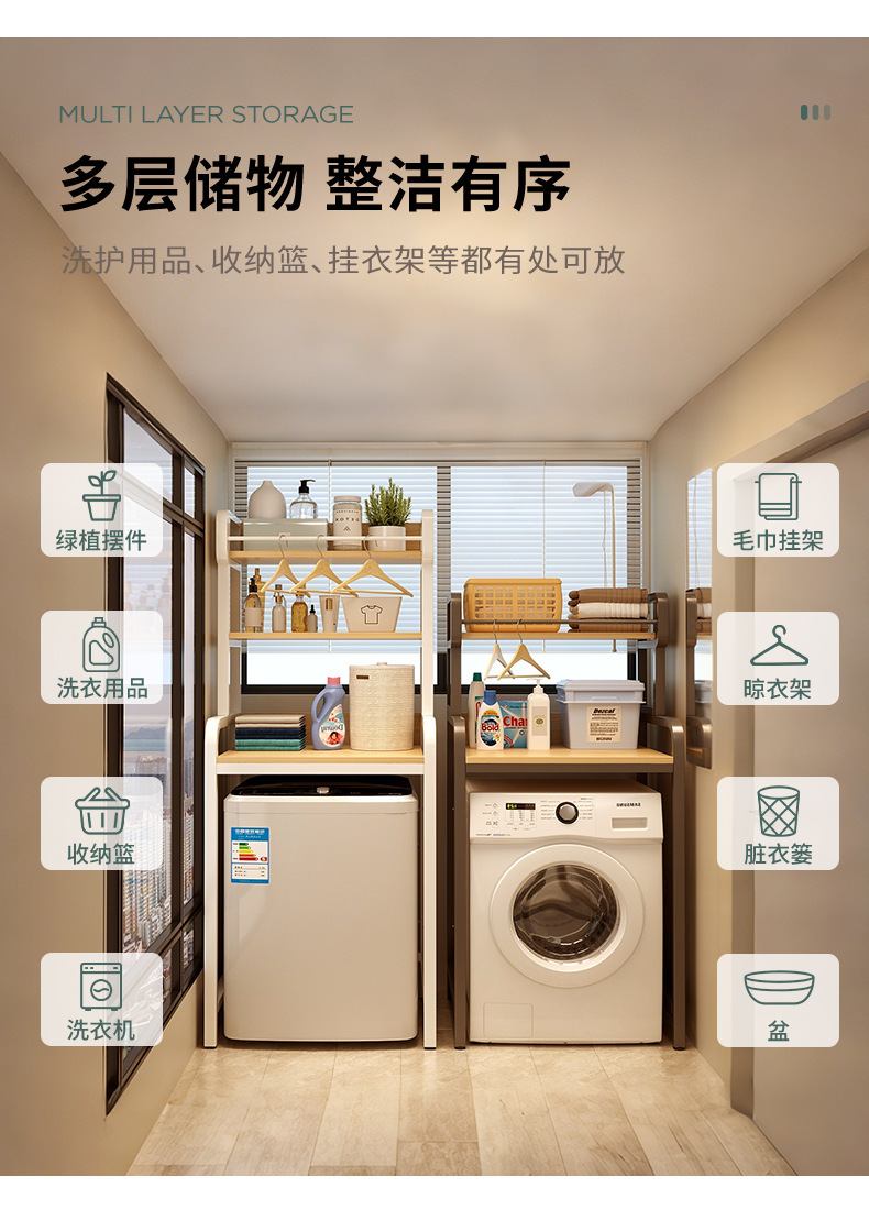 洗衣机上方架子置物架落地滚筒涡轮翻盖波轮卫生间阳台储物收纳柜