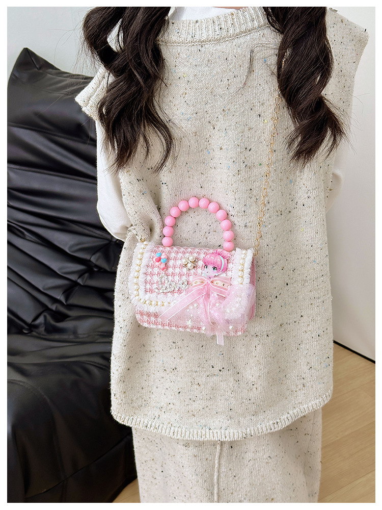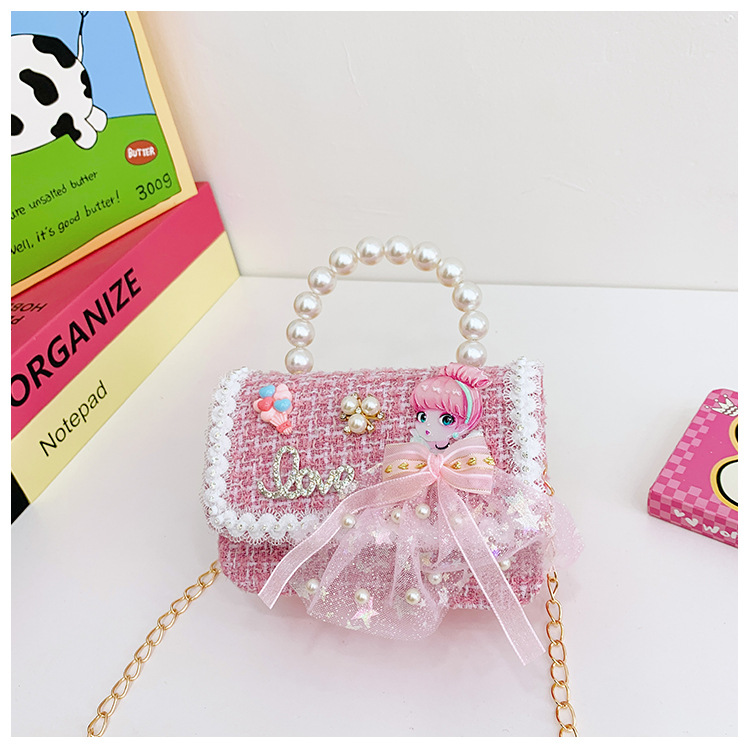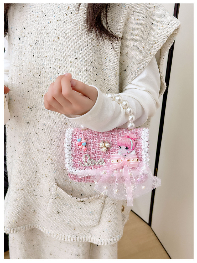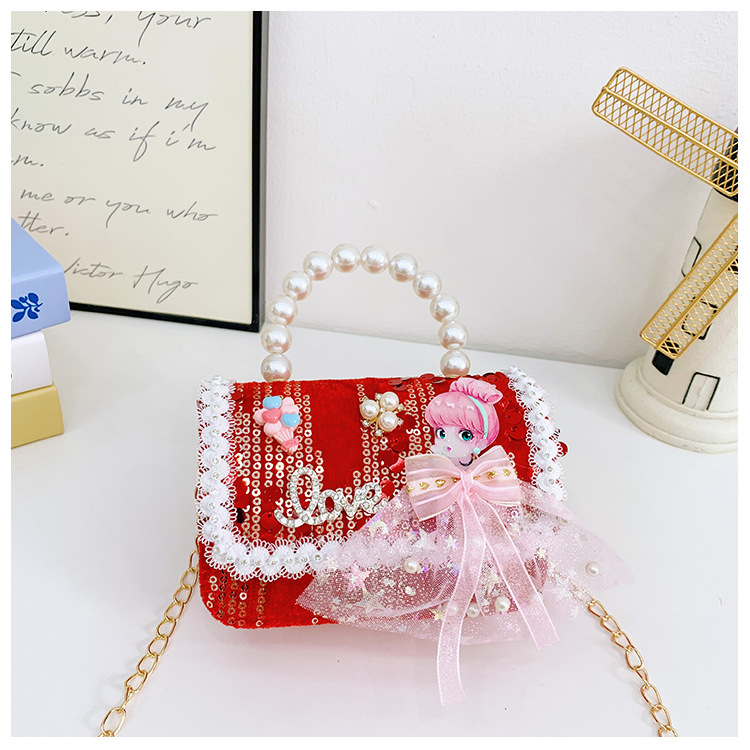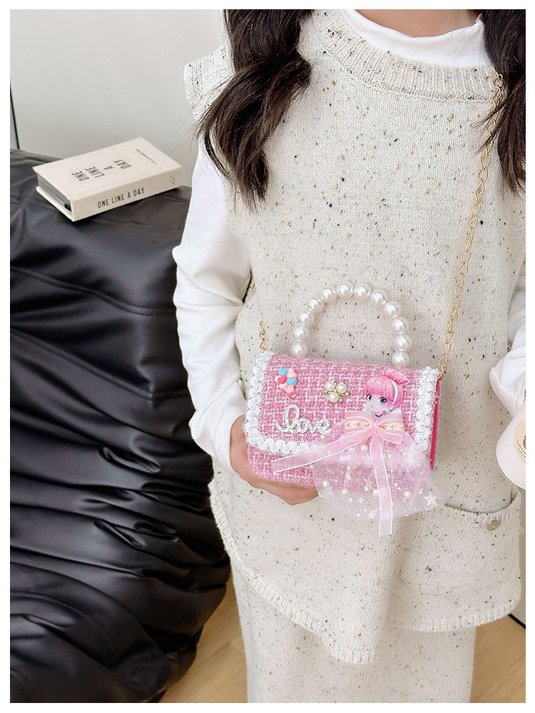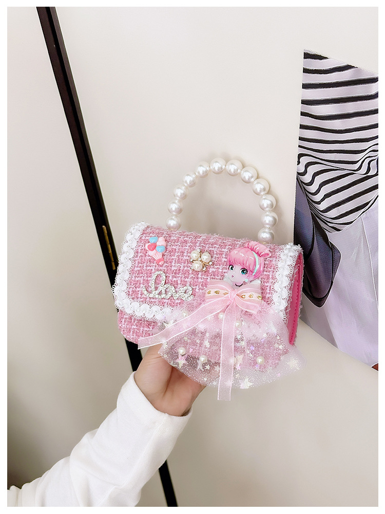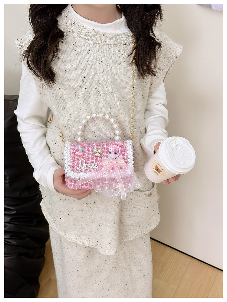 어린이 가방 패션 공주 진주 핸드백 귀여운 소녀 동전 지갑 서양식 레이스 어깨 크로스 바디 백