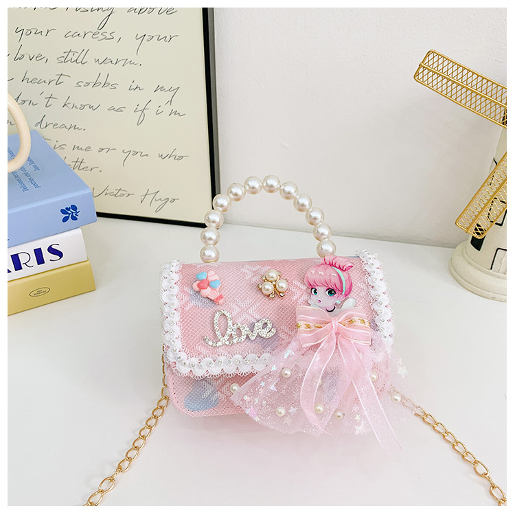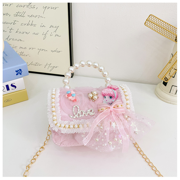 어린이 가방 패션 공주 진주 핸드백 귀여운 소녀 동전 지갑 서양식 레이스 어깨 크로스 바디 백스토어 가기
