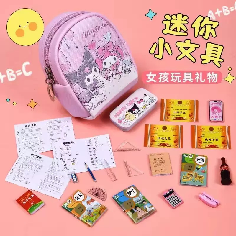 어린이 미니 문구 소녀 장난감 작은 학교 가방 소형 귀여운 장난감 시뮬레이션 항목 책 및 시험지 전체 세트스토어 가기
