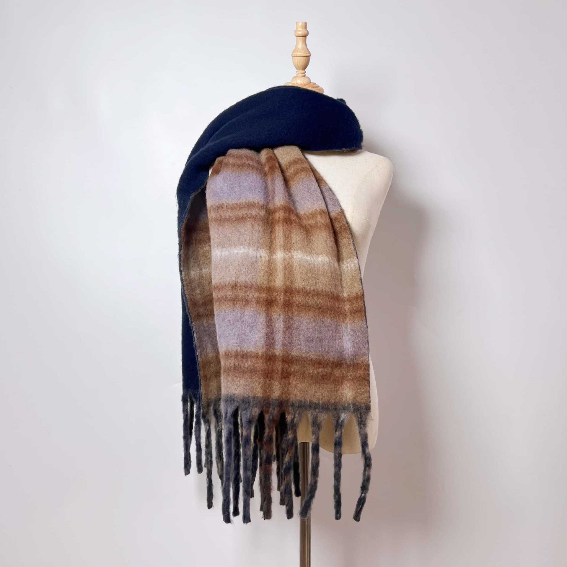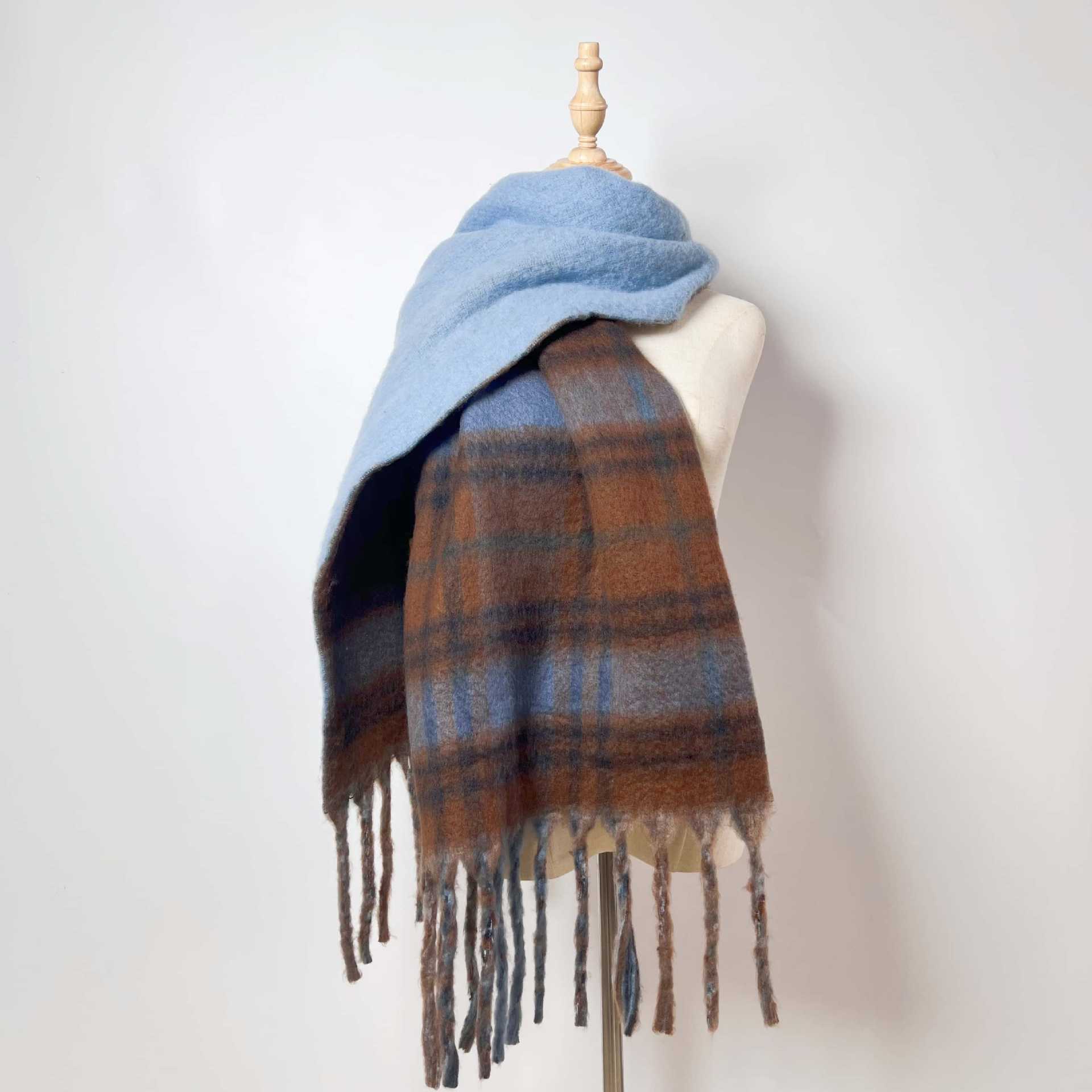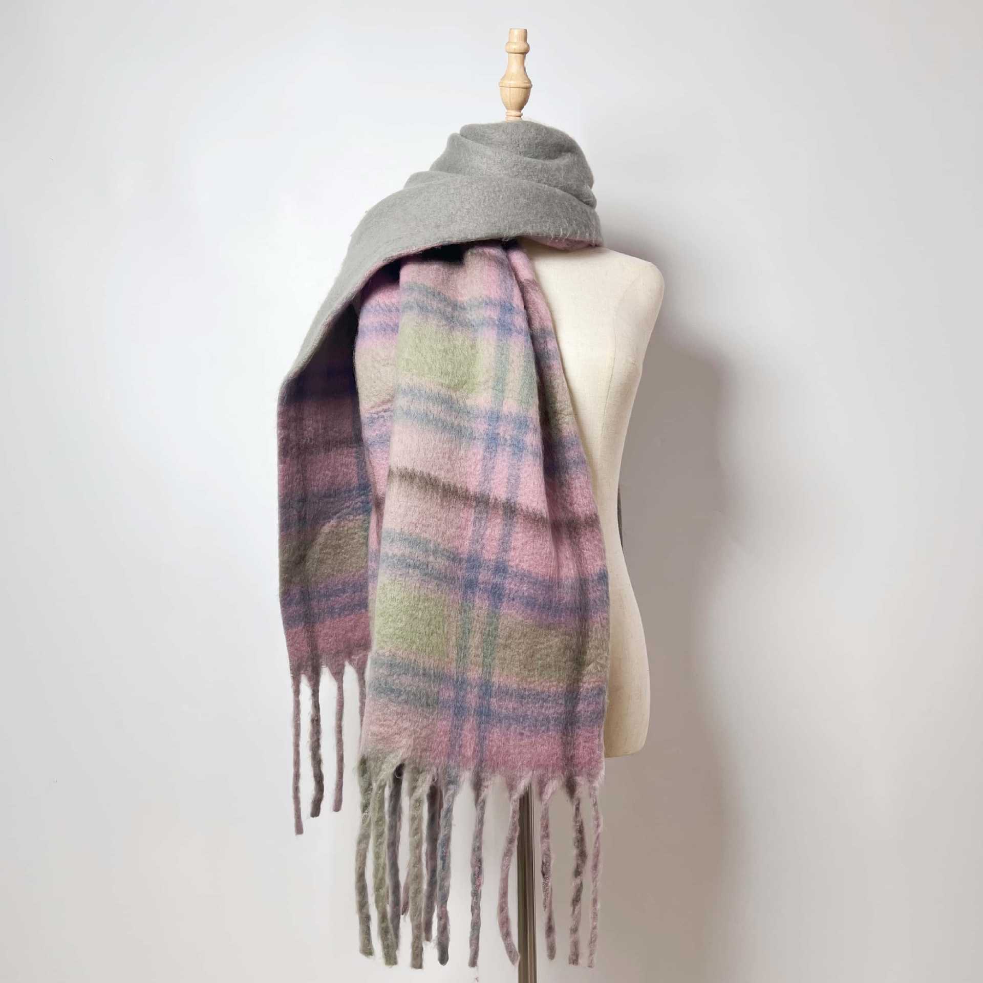 여성을 위한 새로운 스타일의 두꺼운 거즈 스카프, 다용도 격자 무늬 양면 스카프, 두껍고 따뜻한 가을 겨울 스카프, 패셔너블한 숄스토어 가기