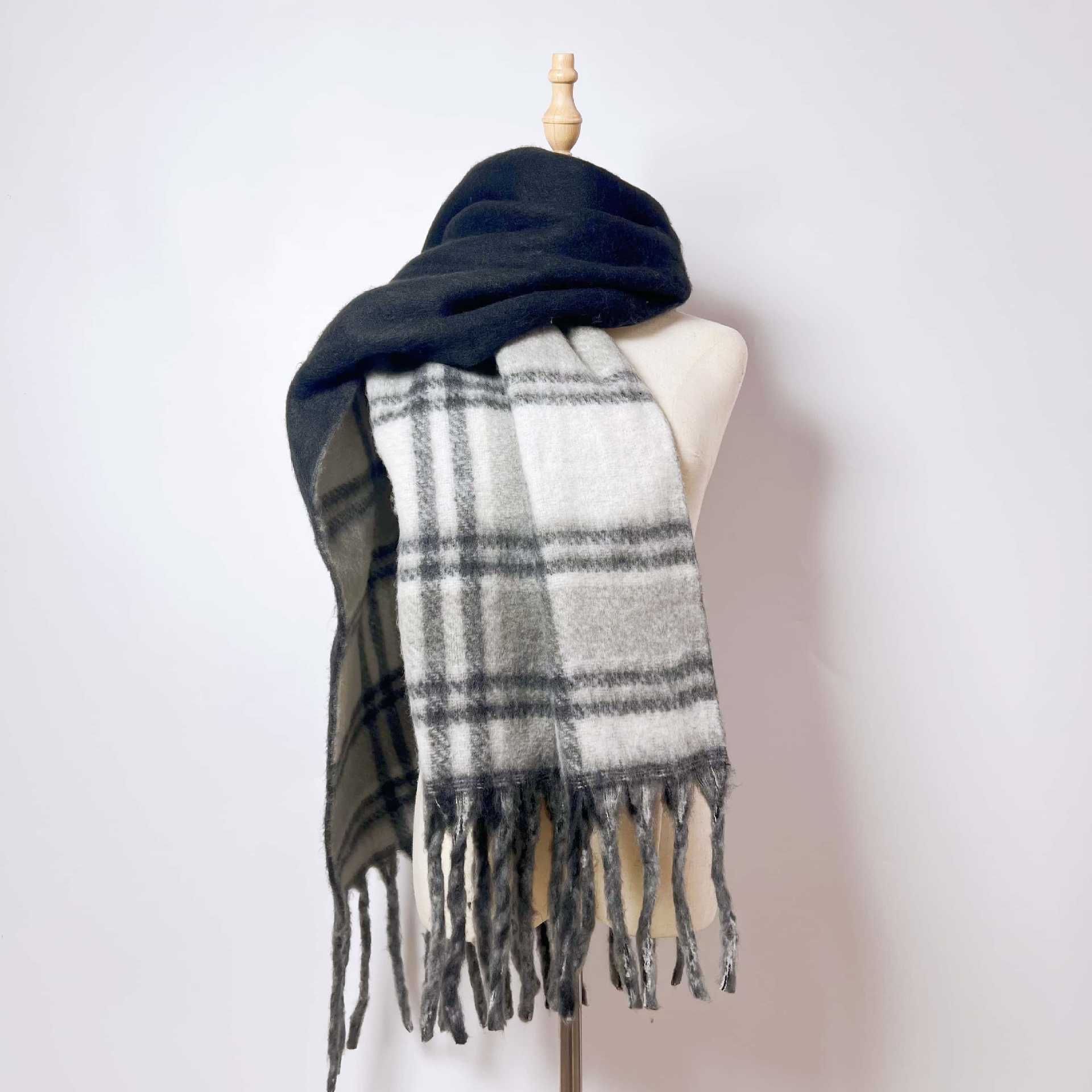 여성을 위한 새로운 스타일의 두꺼운 거즈 스카프, 다용도 격자 무늬 양면 스카프, 두껍고 따뜻한 가을 겨울 스카프, 패셔너블한 숄