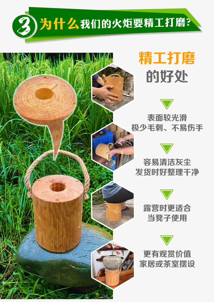 • 작은 스웨덴 토치 [지름 16-17cm, 높이 20cm] 정교하게 연마되어 2-3시간 동안 오래 타오릅니다.