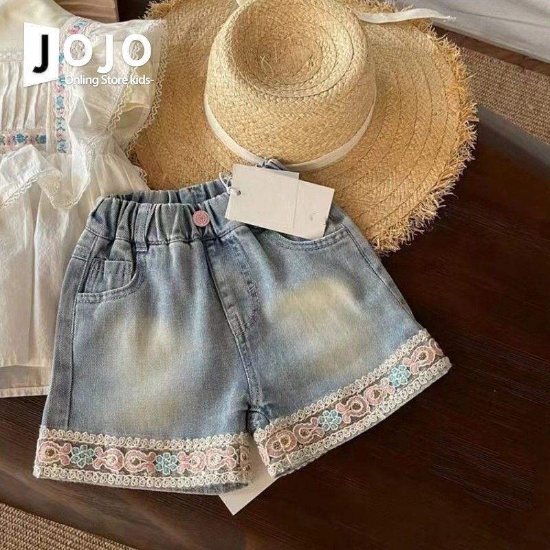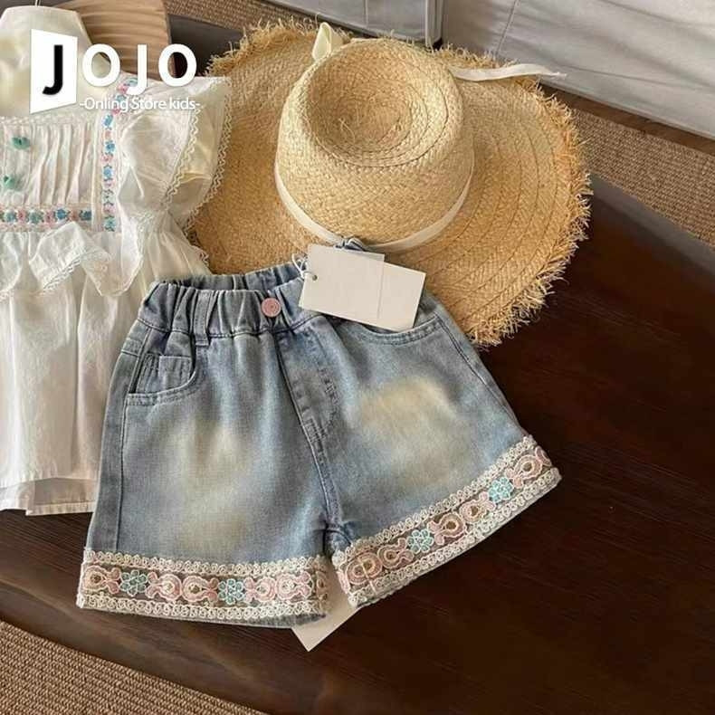 여자 반팔 셔츠 24 여름 스타일 어린이 작은 플라잉 슬리브 흰색 조끼 복고풍 레이스 청바지 인형 셔츠스토어 가기
