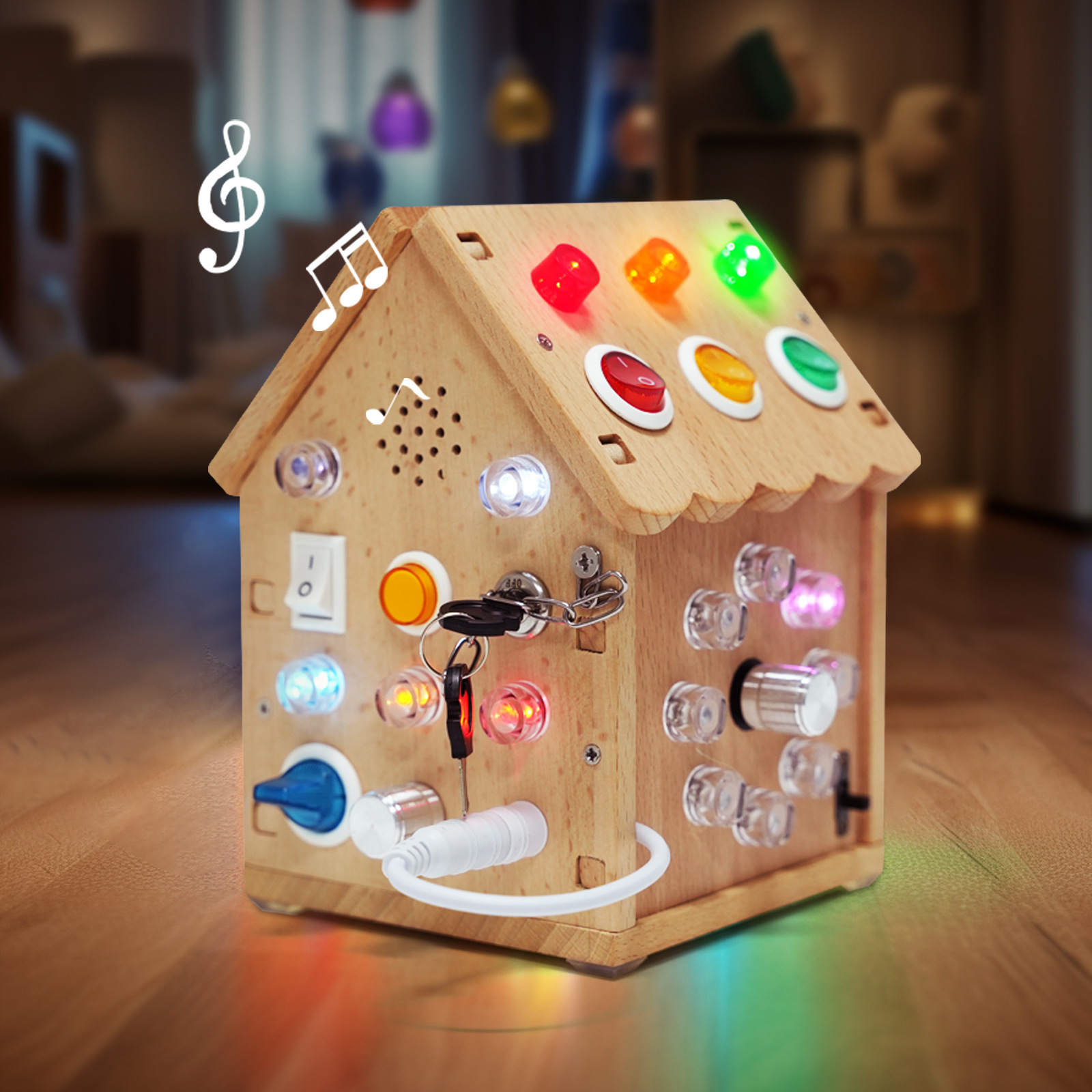 국경 간 조기 교육 나무 LED 스위치 바쁜 보드 분해 나사 너트 도구 카트 몬테소리 어린이 교육 장난감