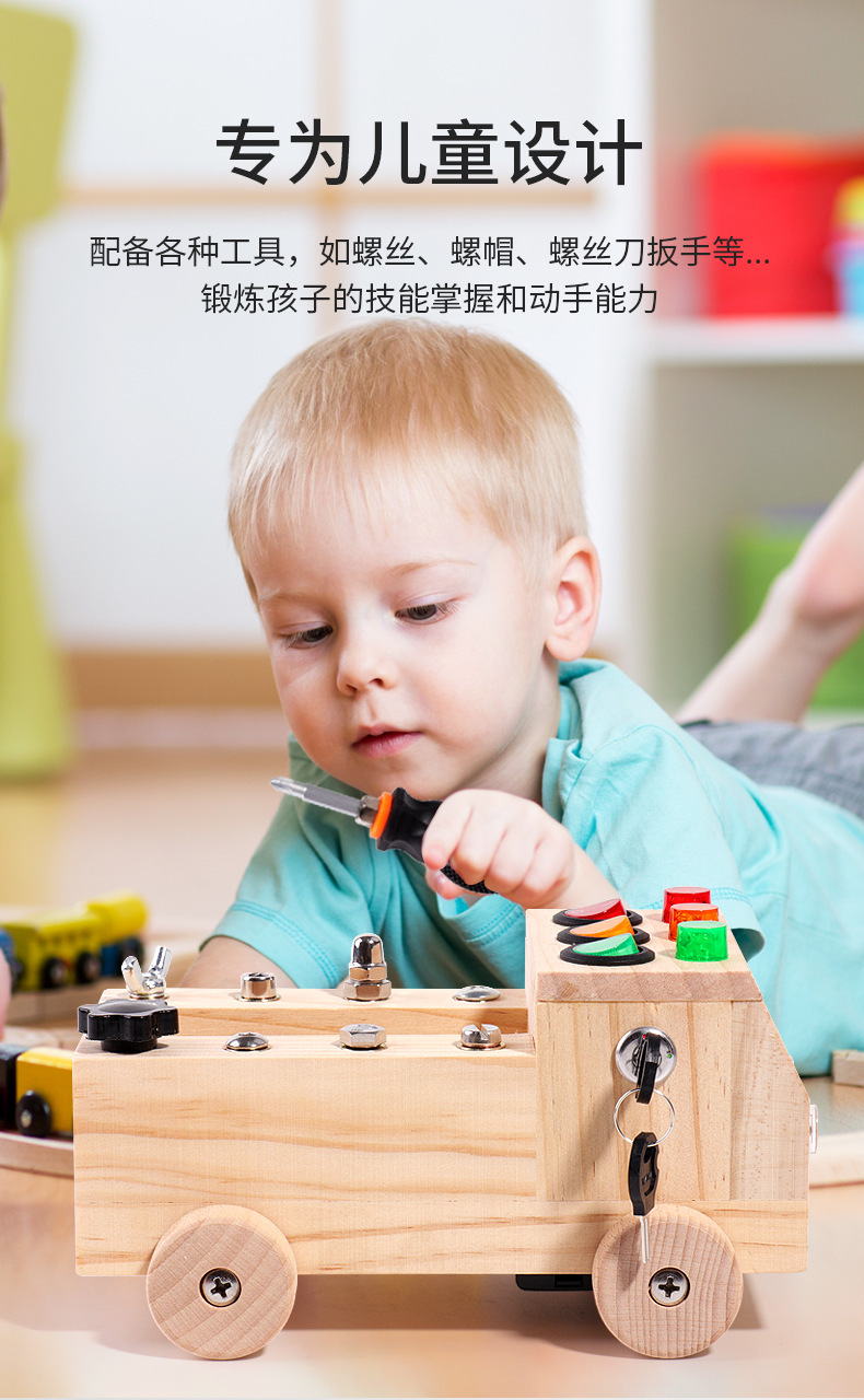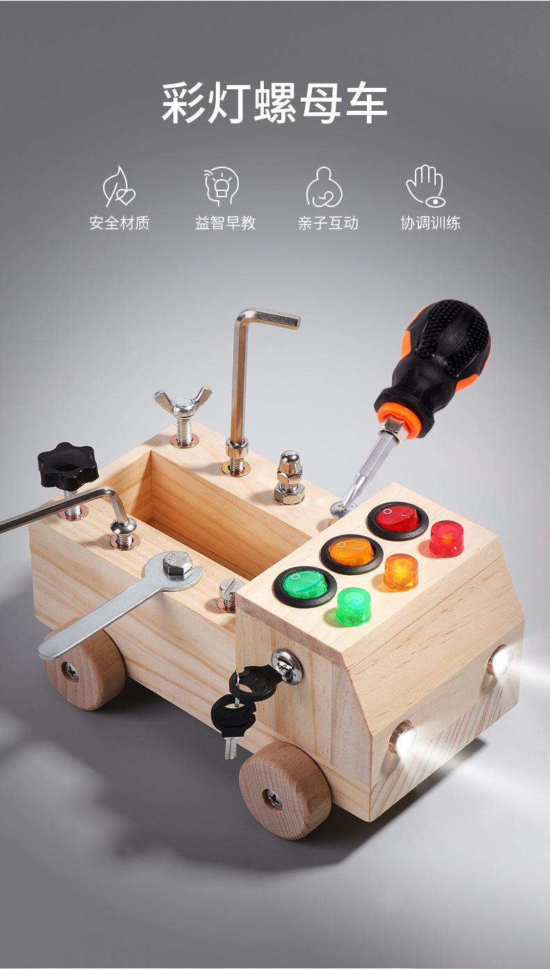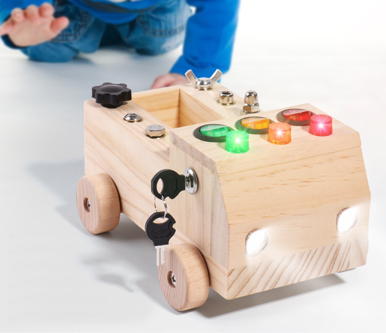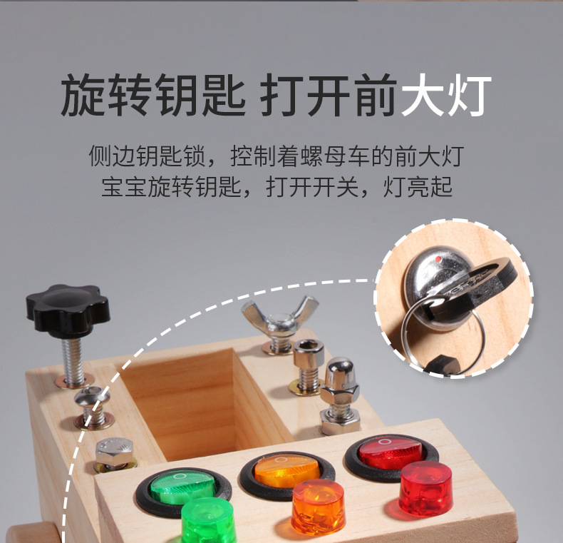 국경 간 조기 교육 나무 LED 스위치 바쁜 보드 분해 나사 너트 도구 카트 몬테소리 어린이 교육 장난감스토어 가기