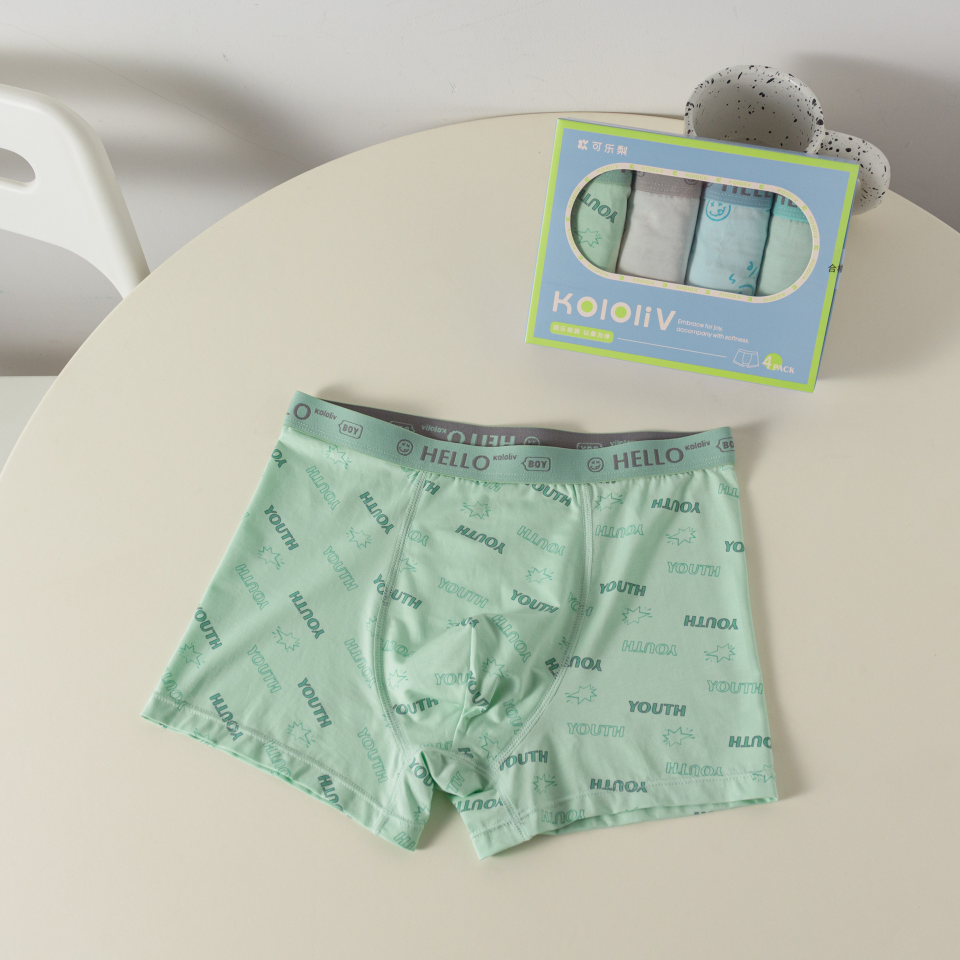 청소년 콜라 배 속옷 렌징 모달 사각 플랫 학생 속옷 박스형 4팩 큰 어린이 사각형