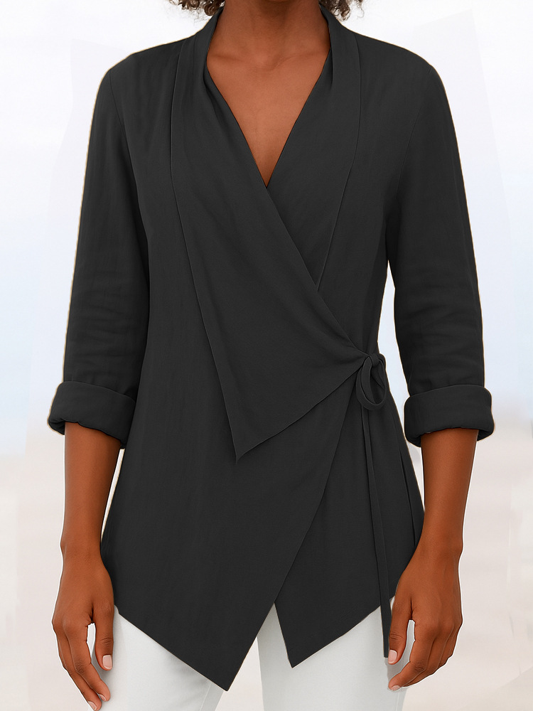 2025년 국경 간 대외 무역 유럽 및 미국 의류 재고 있음 Amazon 봄 여름 라펠 솔리드 컬러 루즈 셔츠스토어 가기
