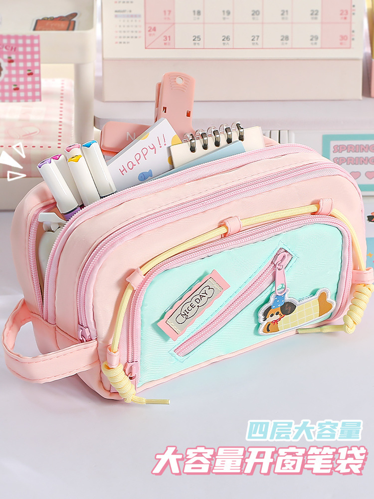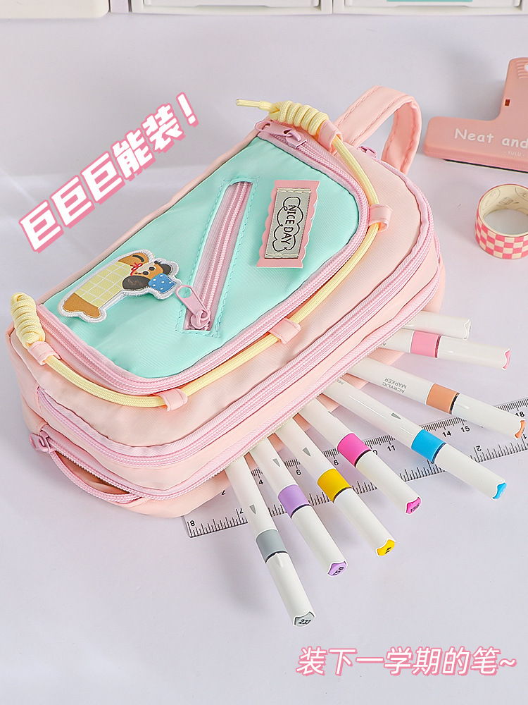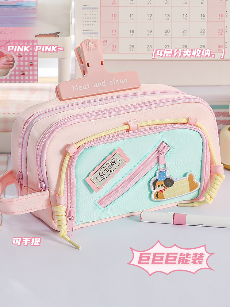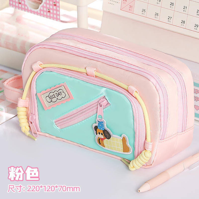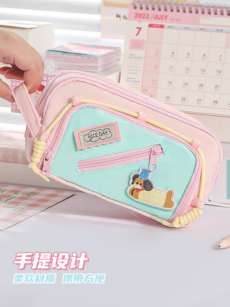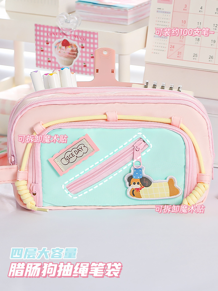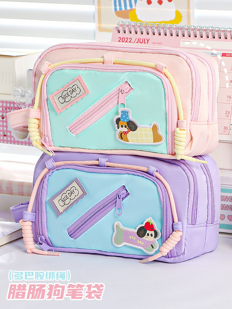 도파민 대비색 닥스훈트 대용량 필통 벨크로 고급스러운 일본식 새 스타일 필통