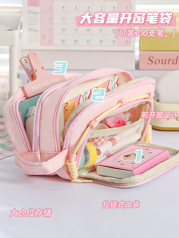 도파민 대비색 닥스훈트 대용량 필통 벨크로 고급스러운 일본식 새 스타일 필통스토어 가기