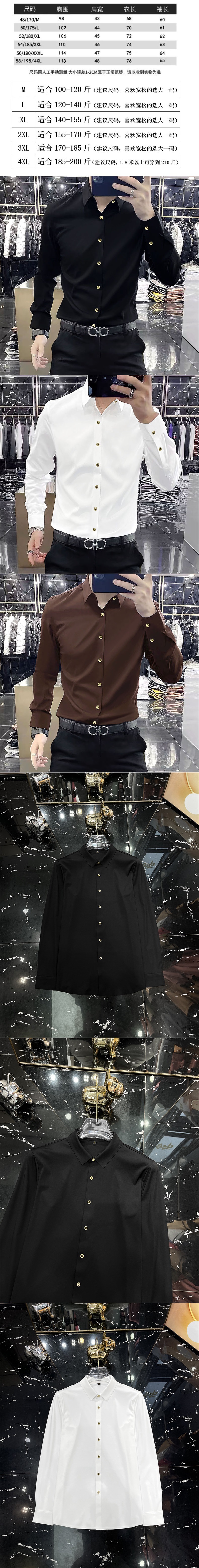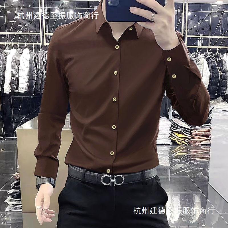 2025 봄 스타일 캐주얼 긴팔 셔츠 남성 가을 새로운 크라운 버튼 슬림 스트레치 비즈니스 셔츠 도매스토어 가기