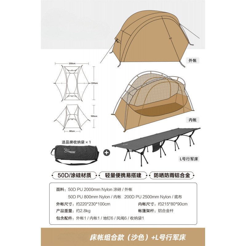 국경 간 야외 캠핑 플러스 캠프 침대 경량 슬리핑 텐트 모기 방지 침대 텐트 필드 텐트스토어 가기