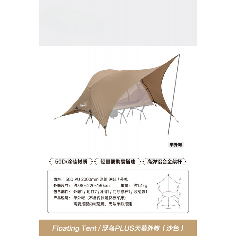 • 플로팅 아일랜드 플러스 캐노피 외부 텐트 + 내부 텐트 - 카키