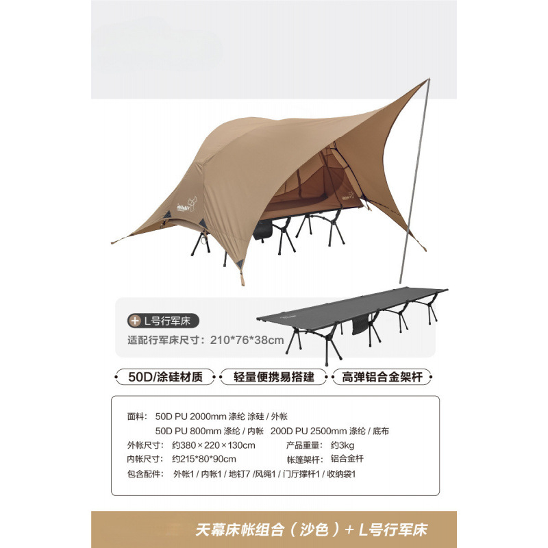 • [기간 한정 이벤트] 플로팅 아일랜드 플러스 캐노피 텐트 - 카키 + L 사이즈 캠프베드