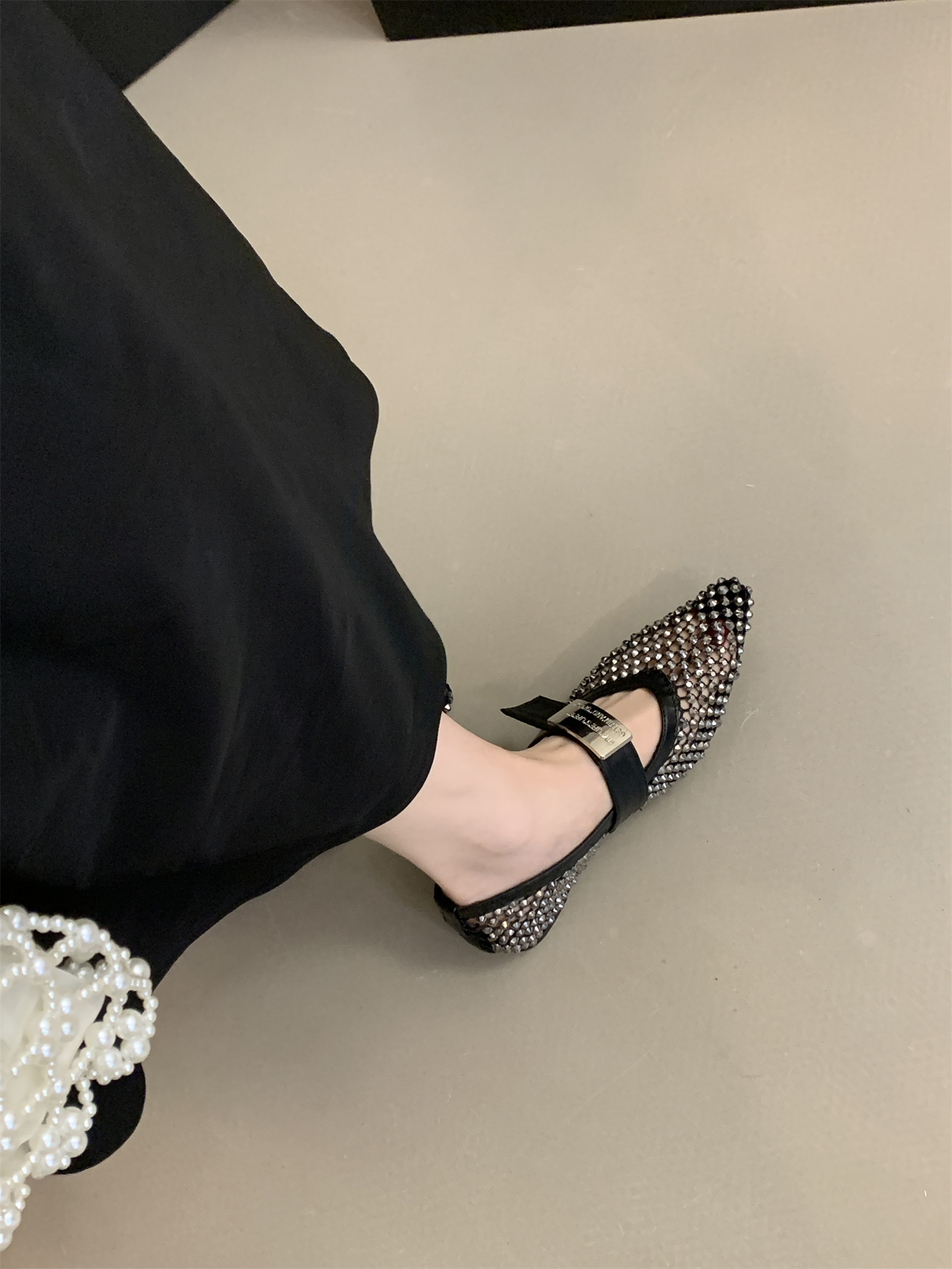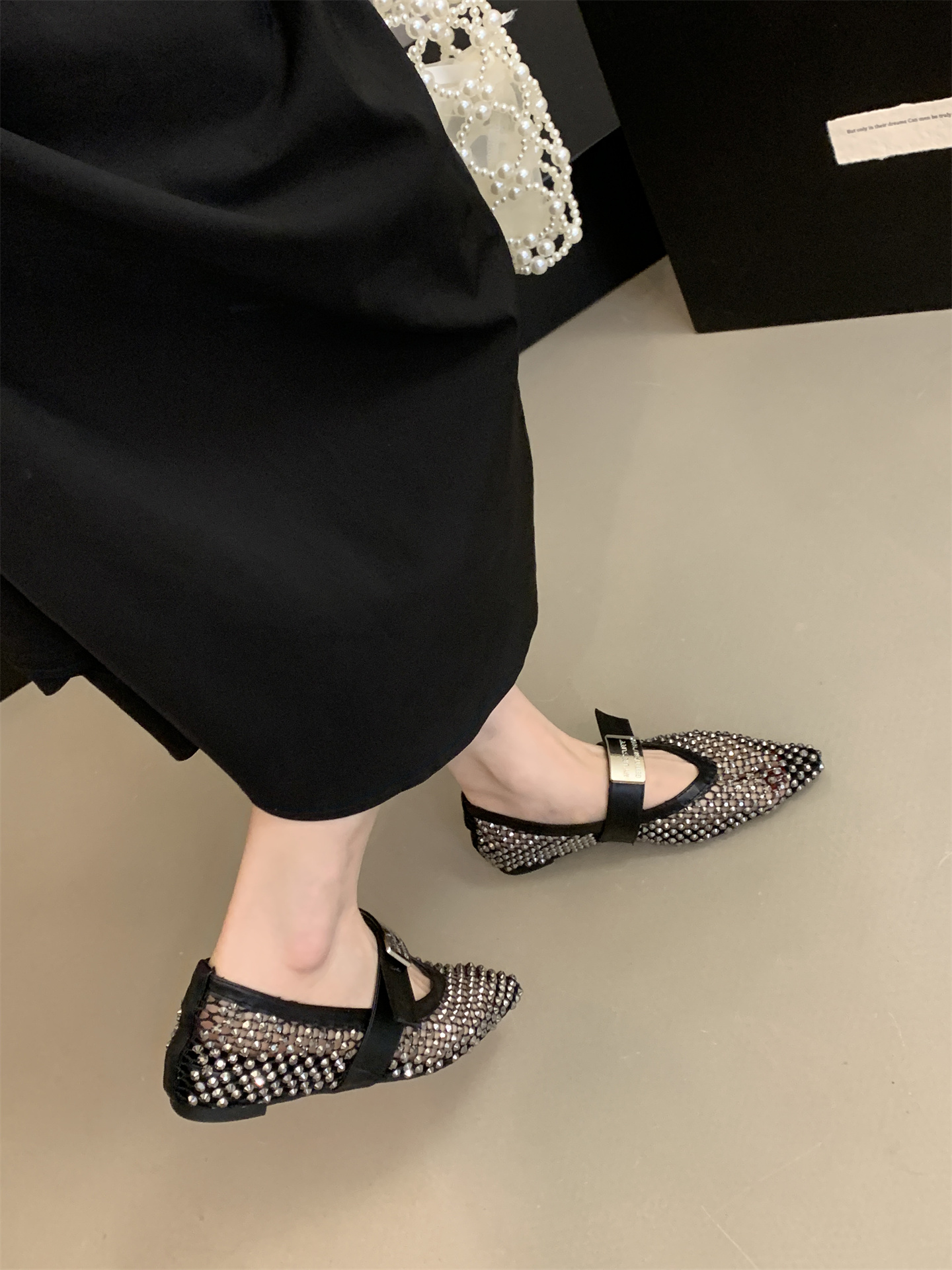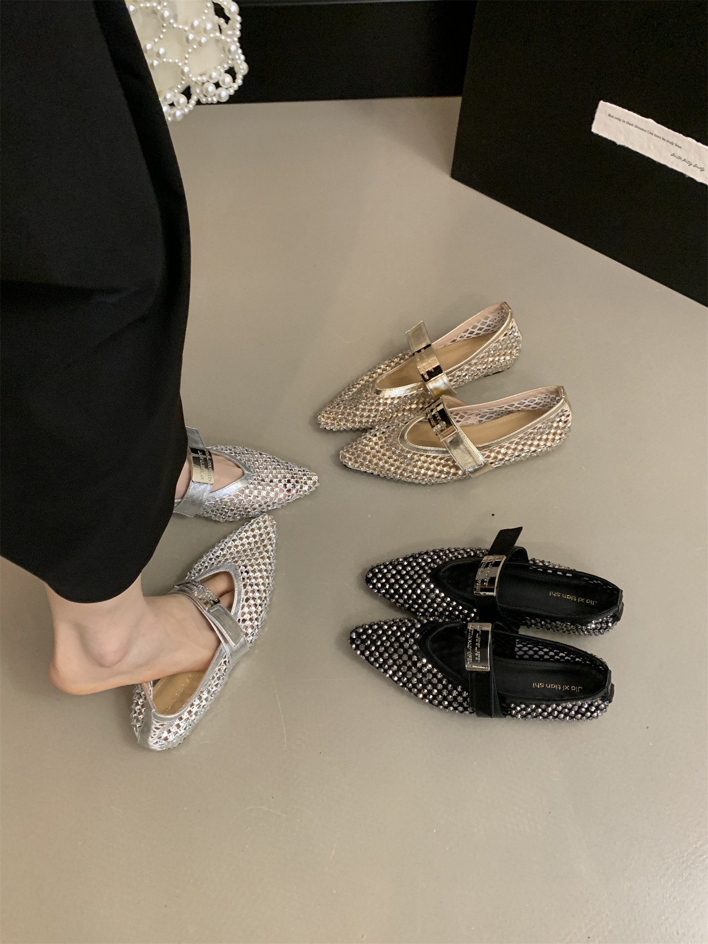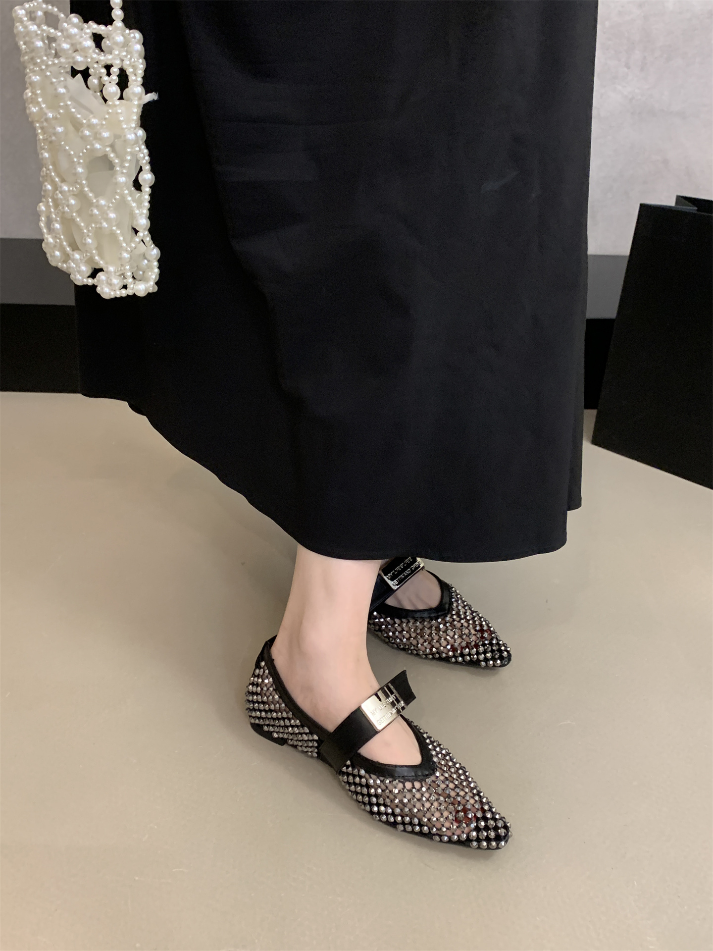 니치 디자인 메쉬 슈즈 2025 여름 신상 플랫 바닥 라인스톤 메쉬 슈즈 여성 통기성 내부 강화 아름다운 샌들스토어 가기