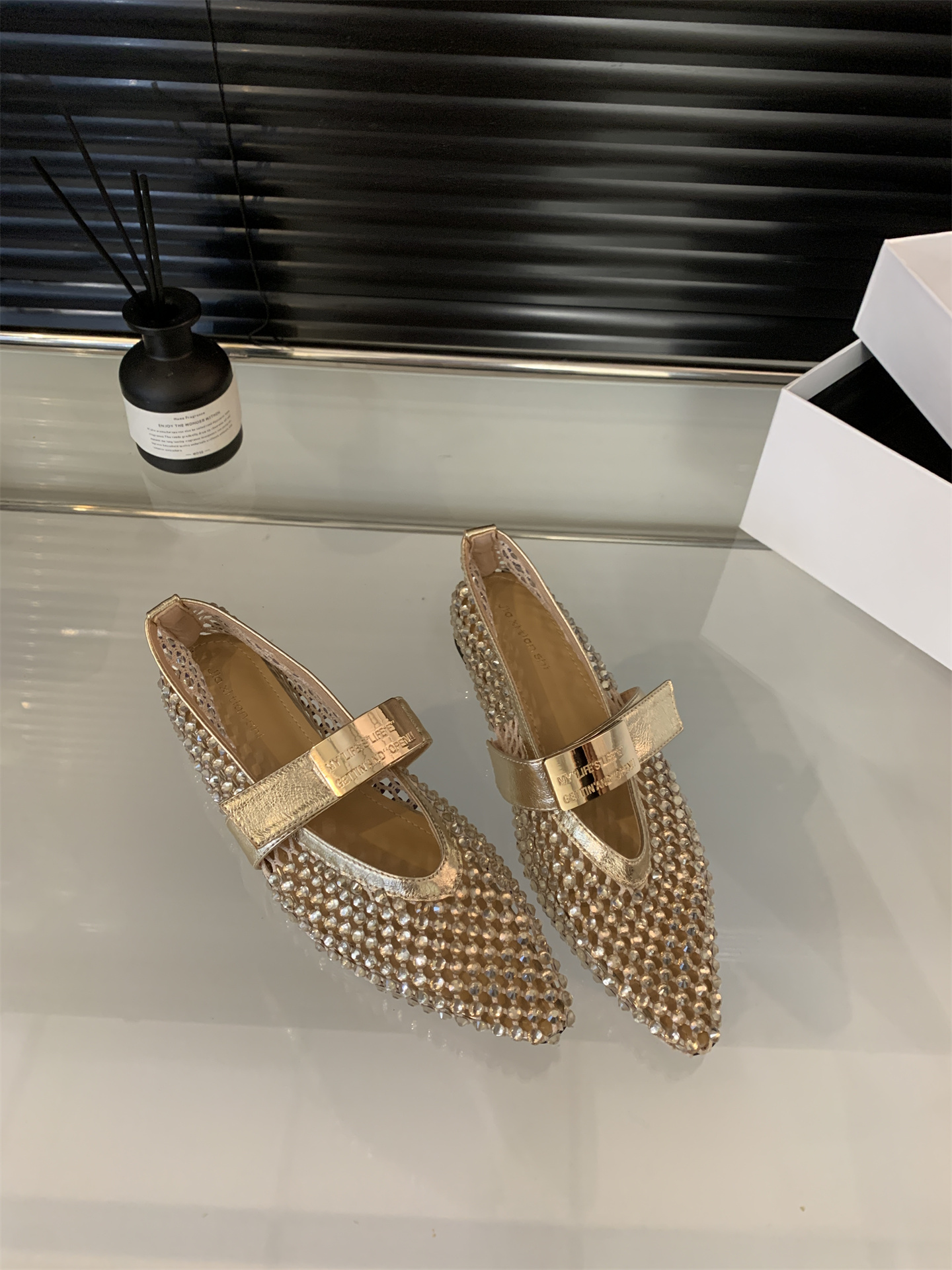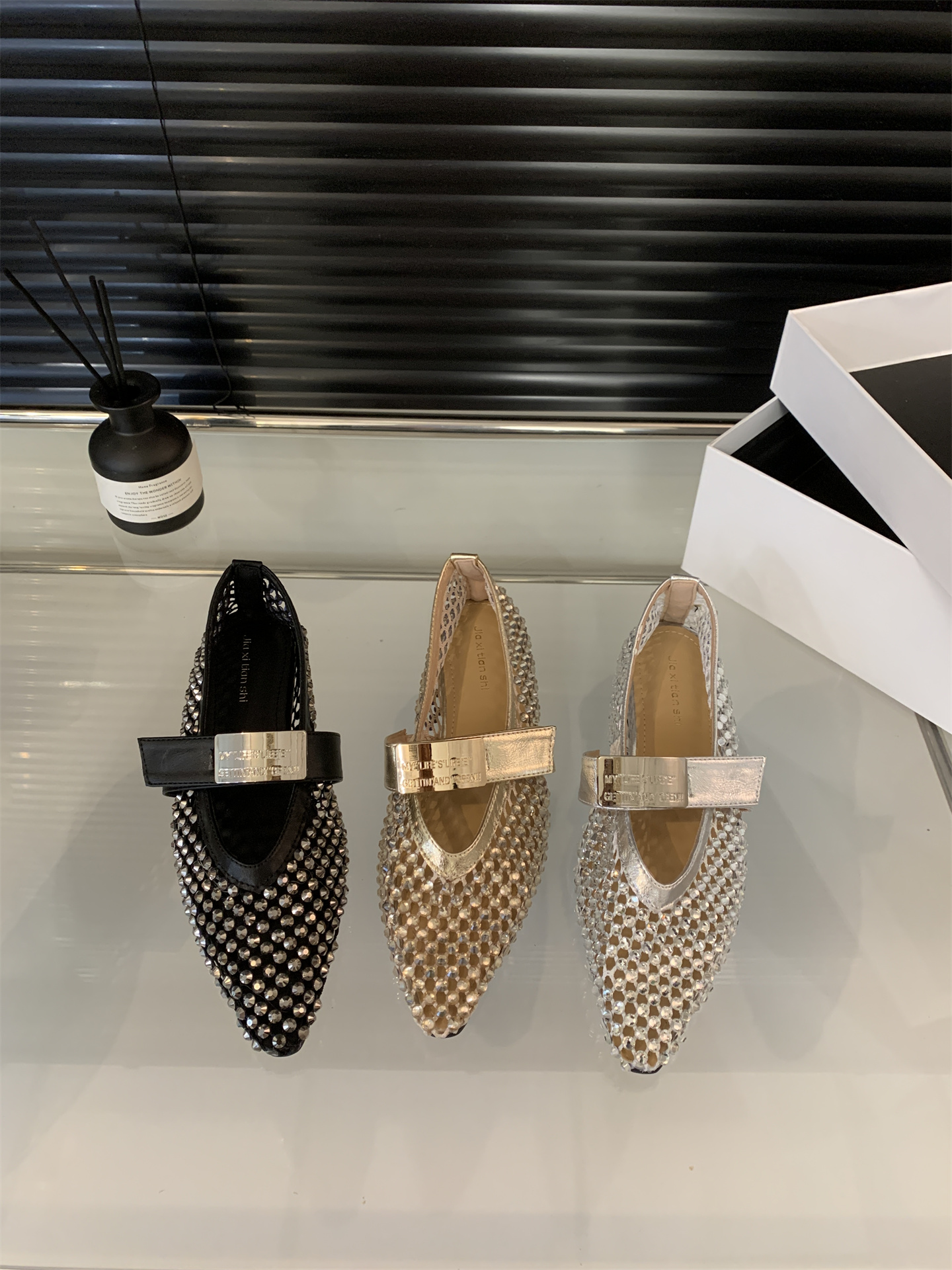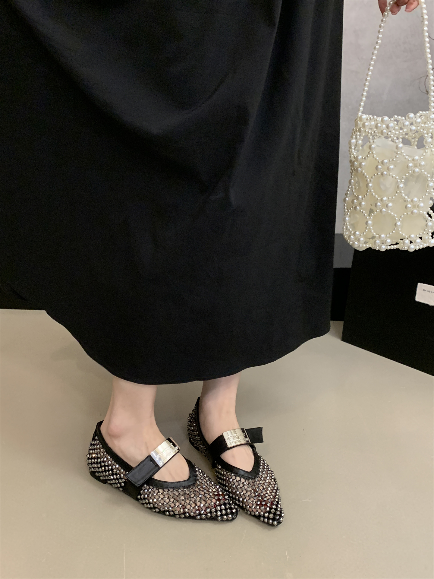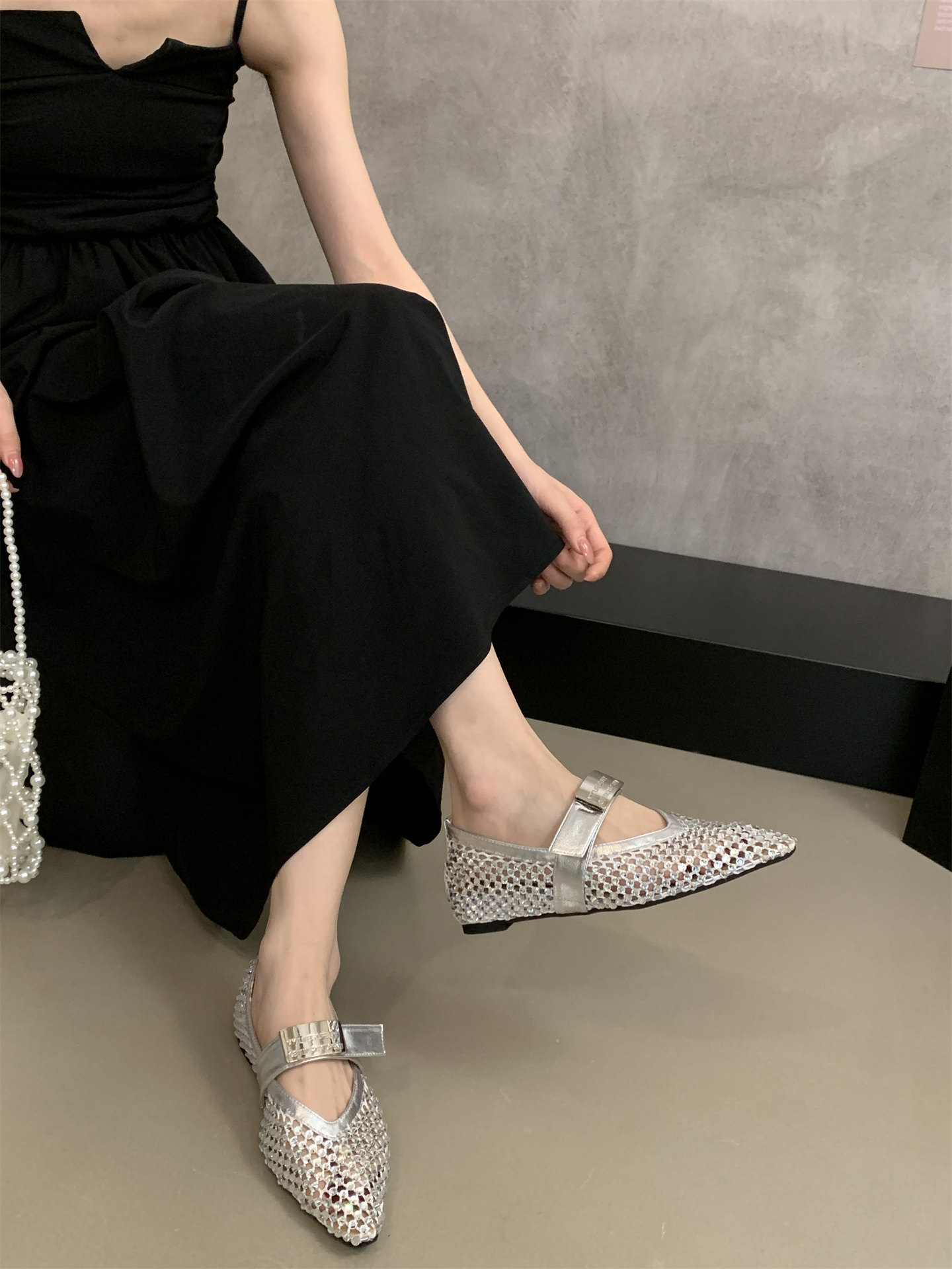 니치 디자인 메쉬 슈즈 2025 여름 신상 플랫 바닥 라인스톤 메쉬 슈즈 여성 통기성 내부 강화 아름다운 샌들스토어 가기