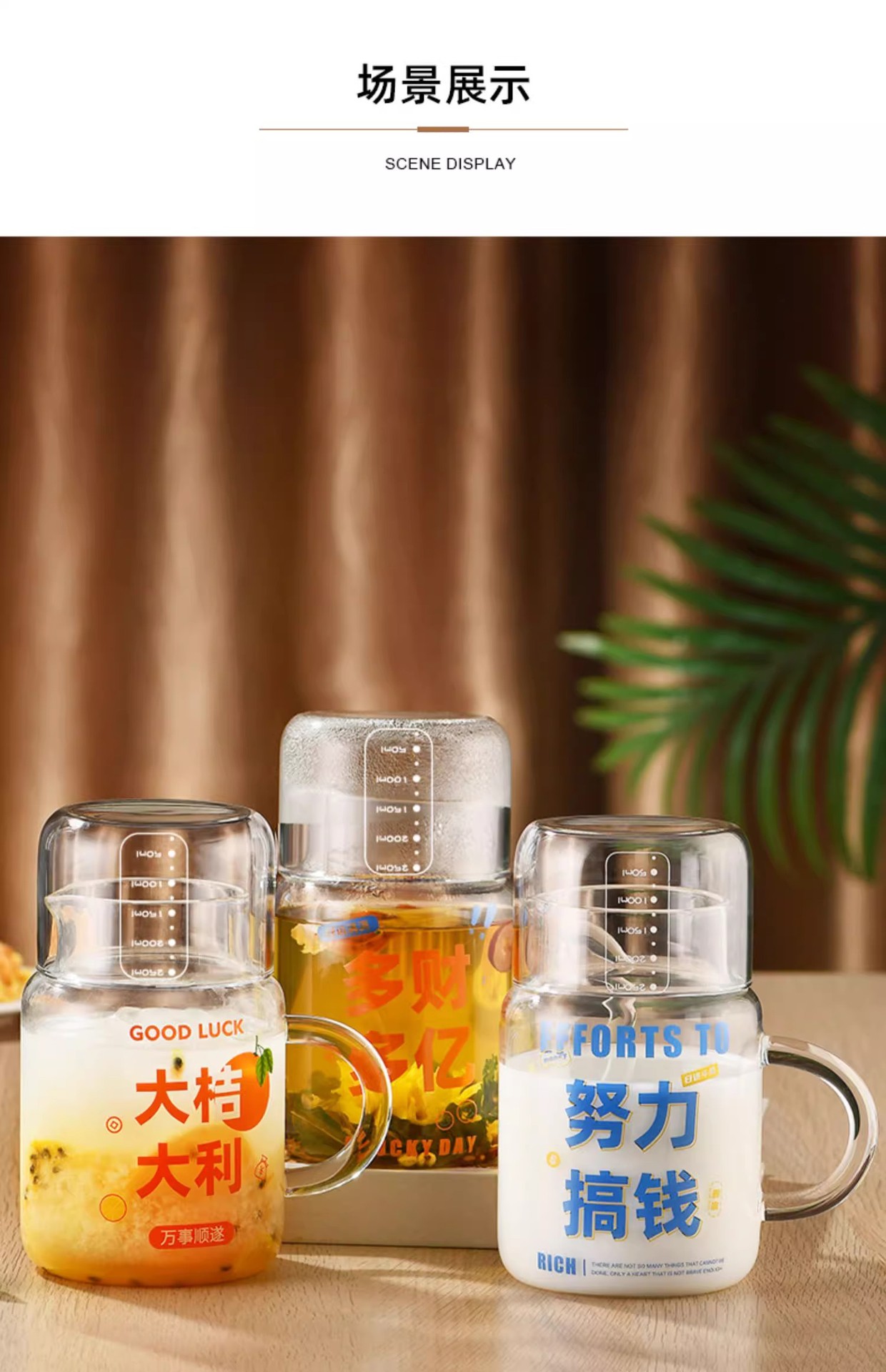 뚜껑이 있는 대용량 유리컵, 가정용 마시는 컵, 여성용 새 내열 컵, 손잡이가 있는 남성용 찻잔